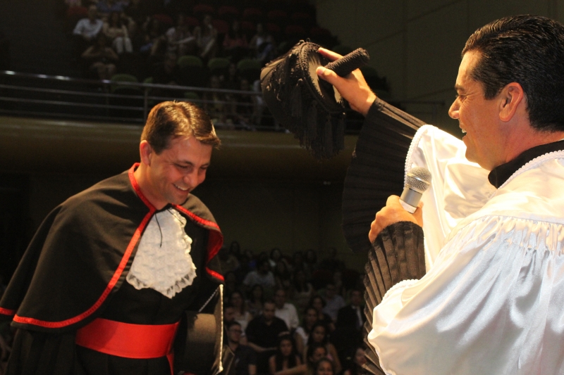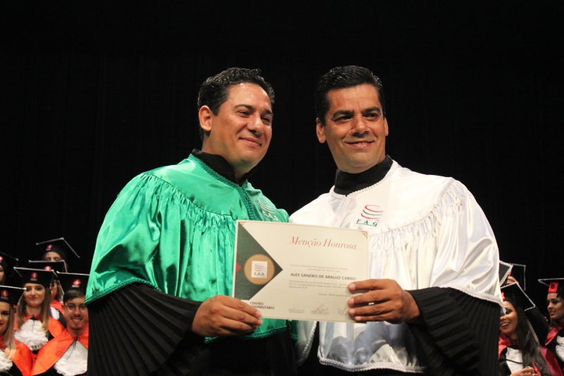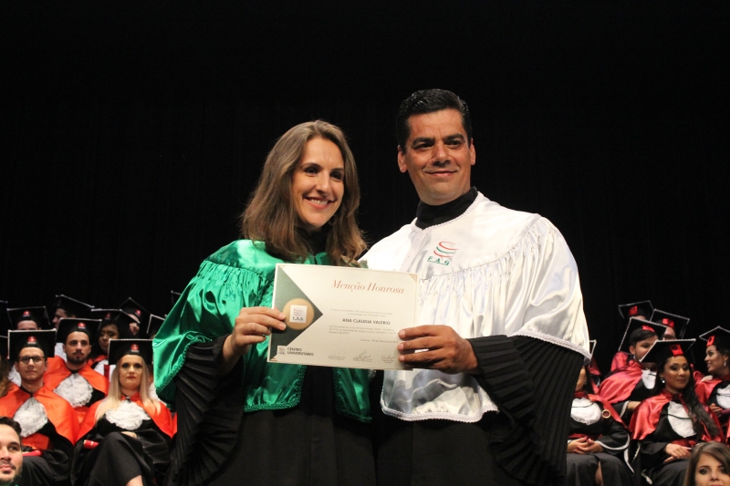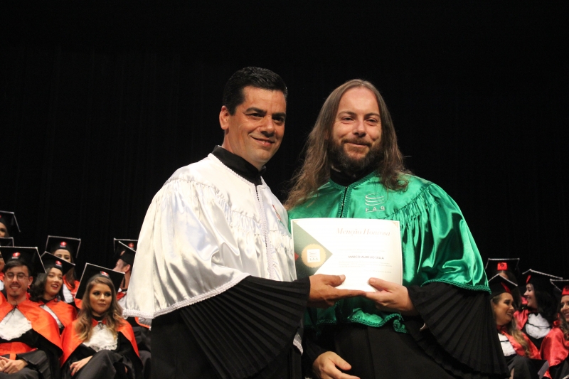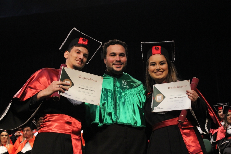 A mesa de honra foi composta pelo Pró-Reitor Acadêmico, Afonso Cavalheiro Neto, que presidiu a sessão, junto a Secretária Acadêmica, Maria Madalena de Camargo, dos coordenadores dos cursos, Ralph Willians de Camargo e Laila Rotter Schmidt e, dos professores homenageados pelas turmas.