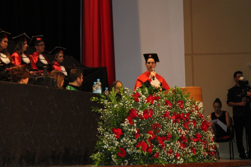 O paraninfo da turma de Publicidade e Propaganda, Marco Sella, não trouxe o seu discurso escrito, ele optou usar suas palavras conforme fosse lembrando os momentos passados com os alunos. "Foi um sentimento incrível quando recebi o convite para ser o Paraninfo da Turma de Publicidade e Propaganda. Sempre chegamos ao final entregando um pouco do que recebemos. Durante a graduação conversamos muito sobre comunicação, América Latina, sobre as diferentes ferramentas que o curso propõe... Desejo que eles tenham uma relação sincera com os outros e sucesso", declarou.