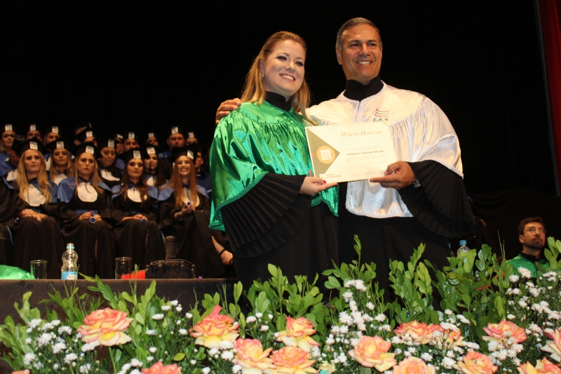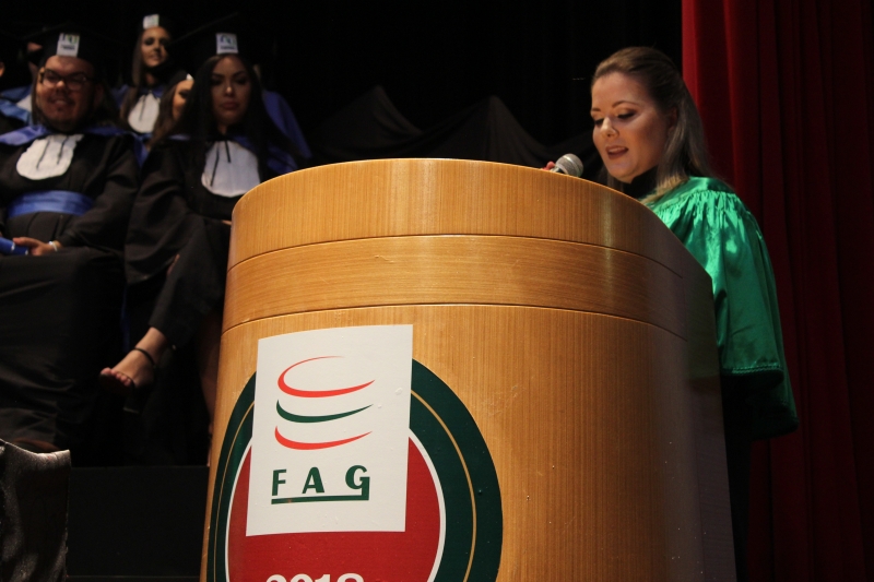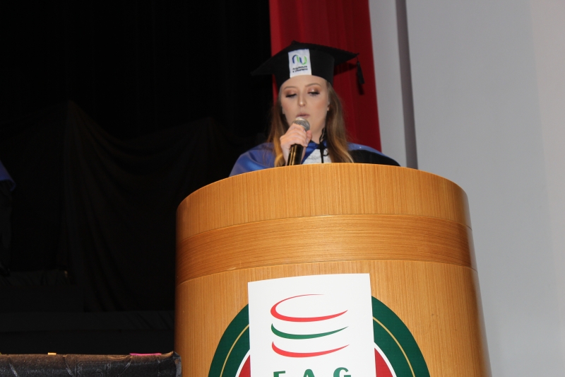 "Superação resume essa noite. Tenho certeza que todos vão brilhar. Desejo que possamos levar as coisas boas já que as ruins foram superadas", de uma forma bem humorada, a oradora da turma, Gabriela Carneiro Krüger, brincou e descreveu os cincos anos da formação.