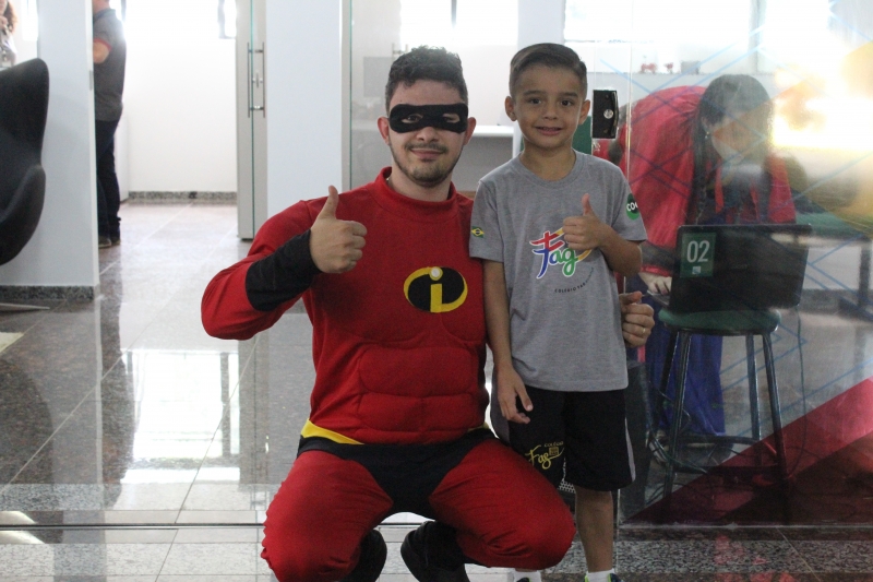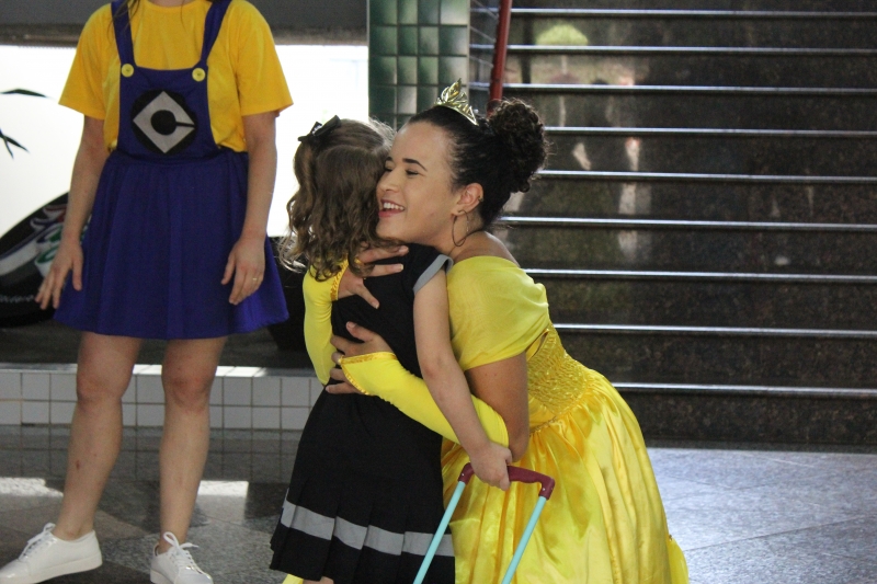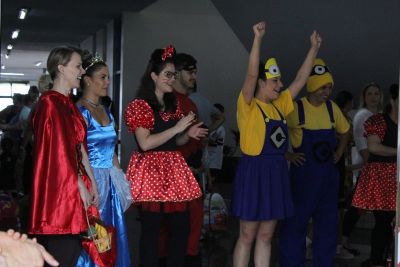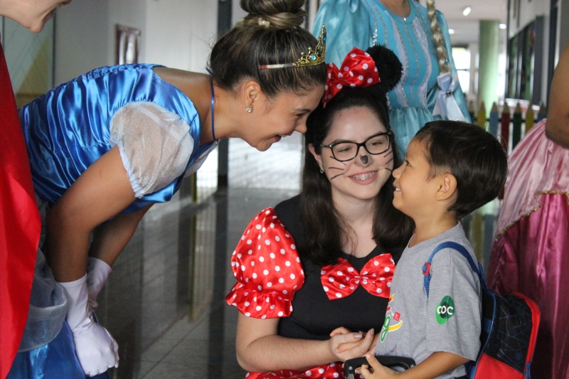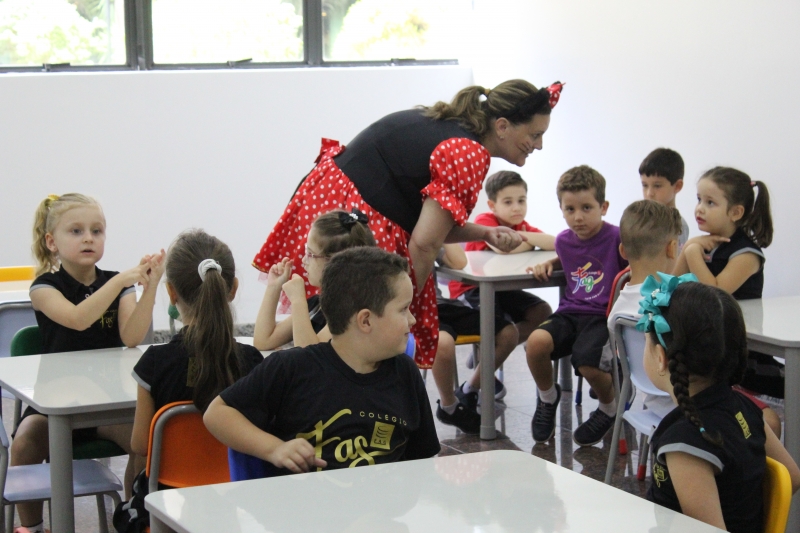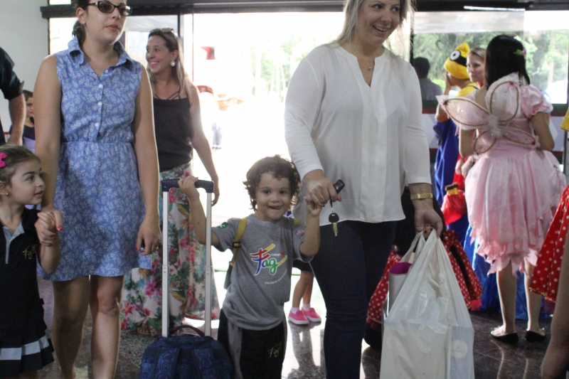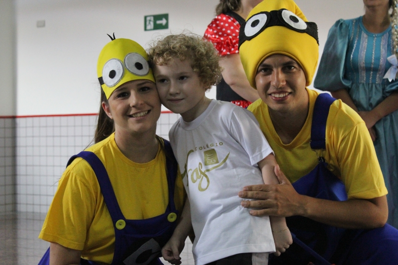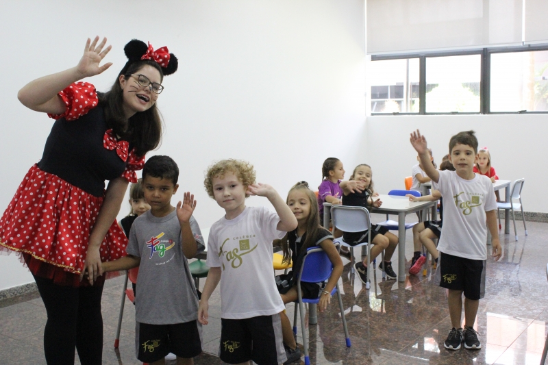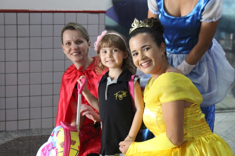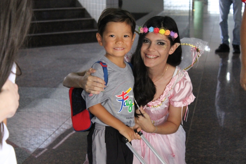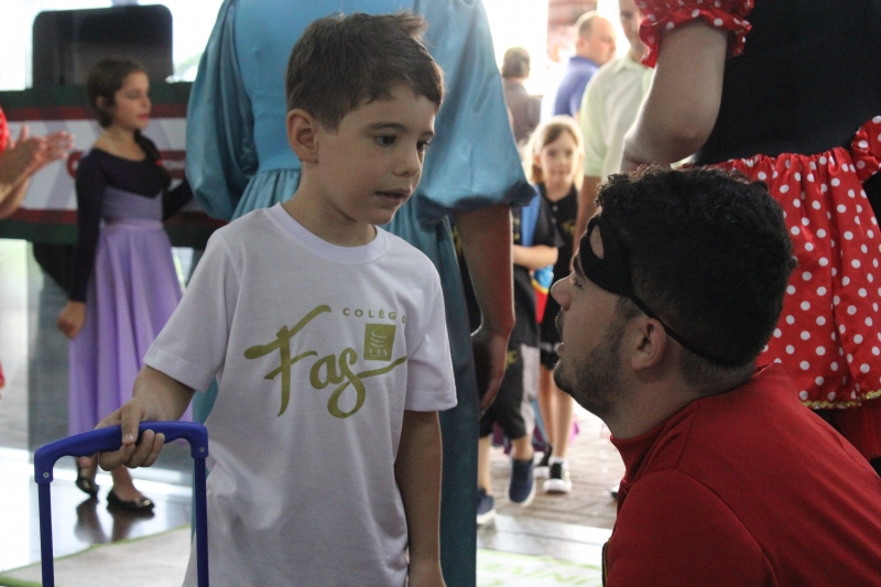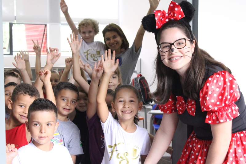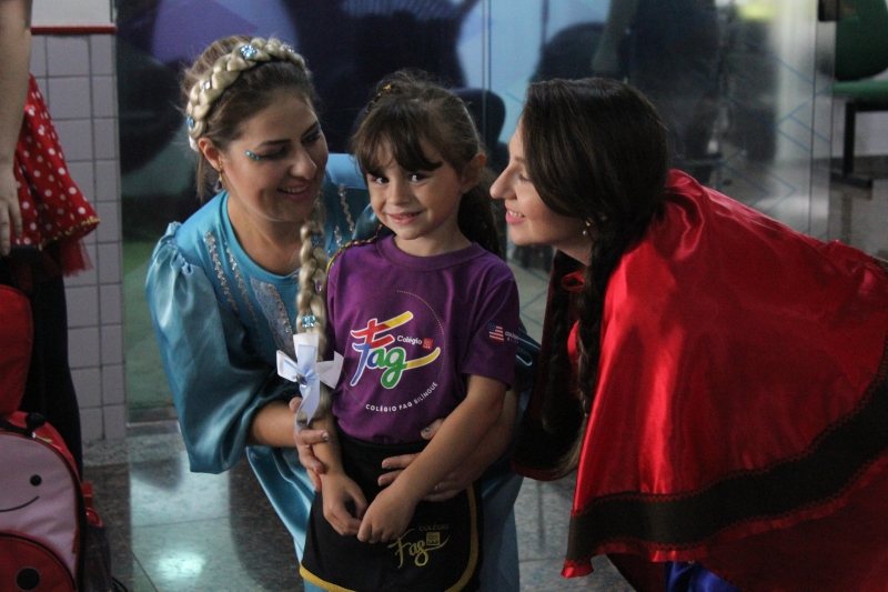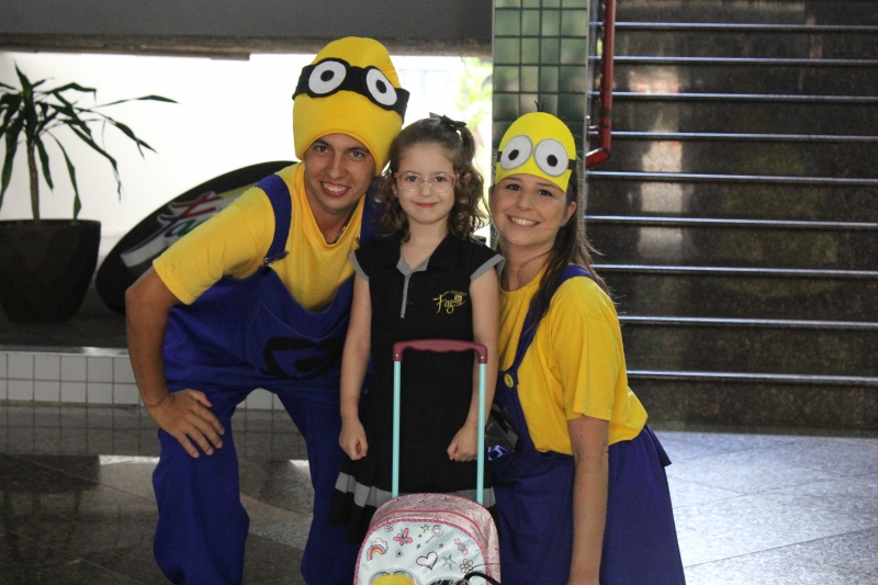 Alunos do Colégio FAG são recepcionados por personagens infantis