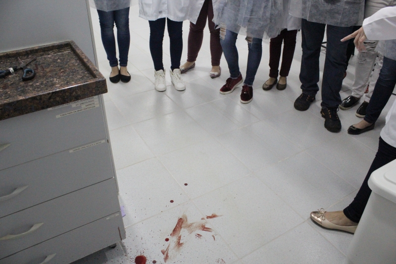 Os alunos realizaram diferentes tipos de testes, entre eles: Método de Takayama - teste confirmatório de sangue; Kaster-Meyer - teste preliminar para a detecção de sangue, usando swab (cotonete), e digital do papel. "Eles estavam bem interessados e curiosos ao mesmo tempo. Esse acesso é uma oportunidade e chance de praticar no laboratório também. A cena do crime foi montada pensando na casa de uma pessoa desaparecida onde vestígios de sangue e objetos suspeitos foram encontrados, e diante disso, eles tiveram que tentar pelo menos, desvendar o que aconteceu no local", explica a professora, Marilesia.