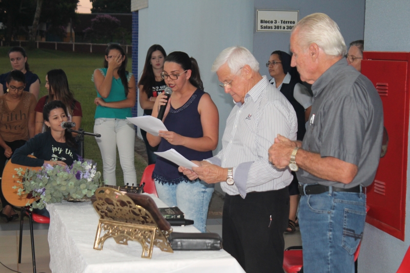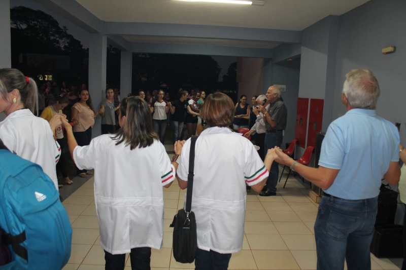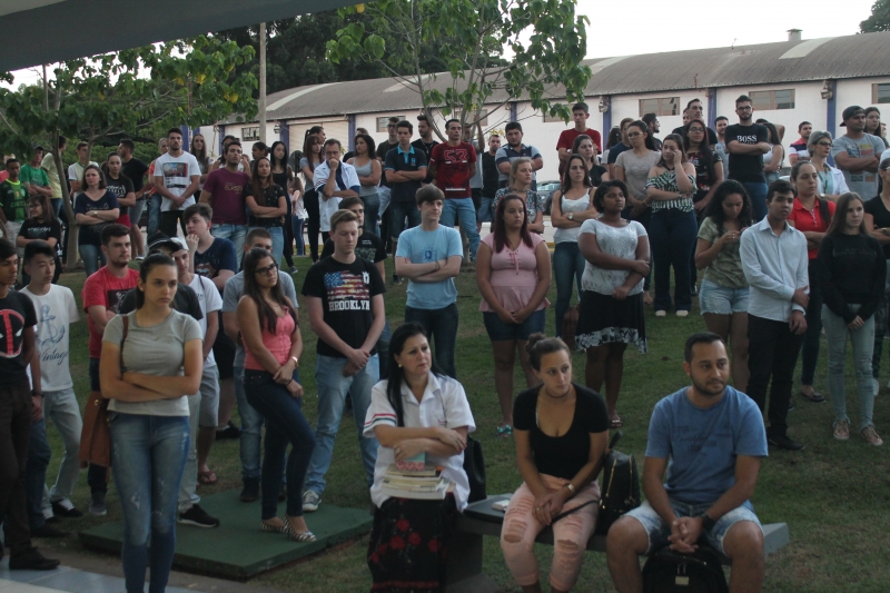 Um momento de oração e reflexão. O culto ecumênico realizado na noite desta quinta-feira (22) na FAG Toledo levou centenas de acadêmicos, professores e colaboradores ao saguão do Bloco III onde acompanharam a breve fala do pastor Edgard Ravache da Igreja Luterana e do padre católico André Aloísio Kasper.