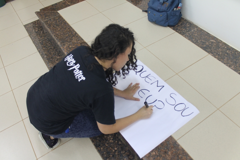 Durante o exercício, os acadêmicos confeccionaram cartazes com reflexões sobre a personalidade de cada um. "Vamos expor este material e indagar sobre as questões mais relevantes que surgirem a partir da atividade. É praticamente colocar o aluno na frente de um espelho, para ele se perceber com todas as suas virtudes, defeitos e desejos", relata.