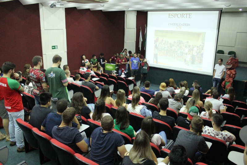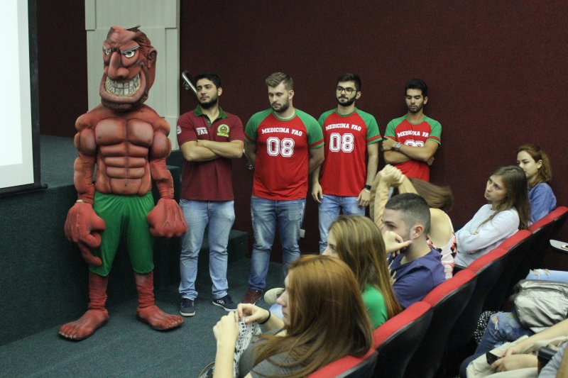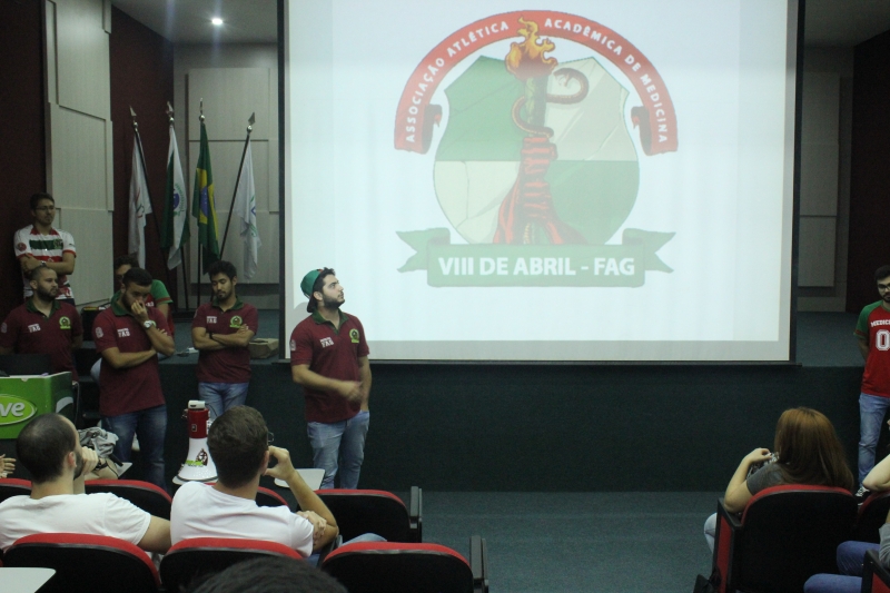 A Associação Atlética Acadêmica de Medicina 8 de Abril reuniu os calouros do curso de Medicina em uma atividade diferente. O encontro aconteceu no Auditório do Bloco I e os estudantes puderam conhecer os projetos que são realizados pelos veteranos, o masco, a bateria, torcida organizada e claro, foram convidados a fazerem parte do grupo.