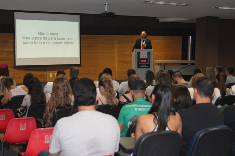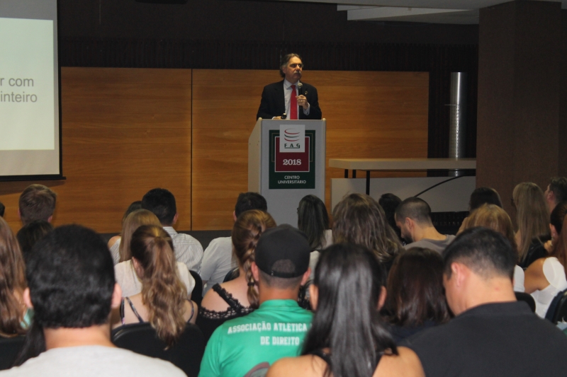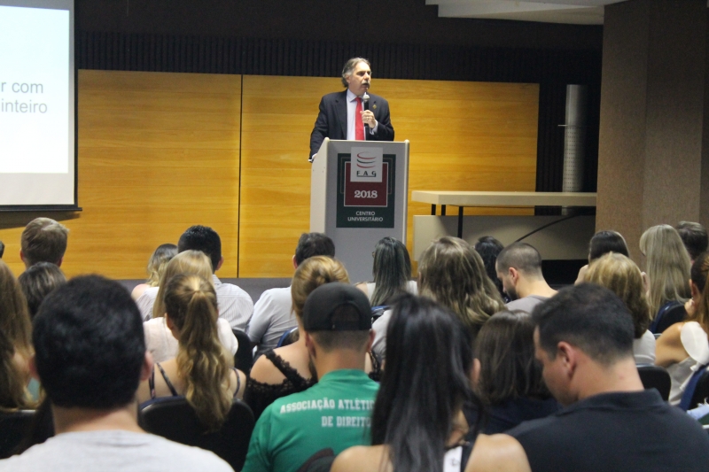 "Se o Direito cuida da forma de viver e hoje vivemos de uma forma completamente diferente do que em décadas passadas, também precisamos discutir alguns entendimentos da justiça, com um olhar sobre esta nova realidade". O alerta foi dado pelo desembargador e corregedor regional do Tribunal Regional do Trabalho da 9ª Região, Sérgio Murilo Rodrigues Lemos, aos acadêmicos do curso de Direito da FAG Toledo, que acompanharam a sua explanação durante a aula magna do curso, na noite desta quarta-feira (7).