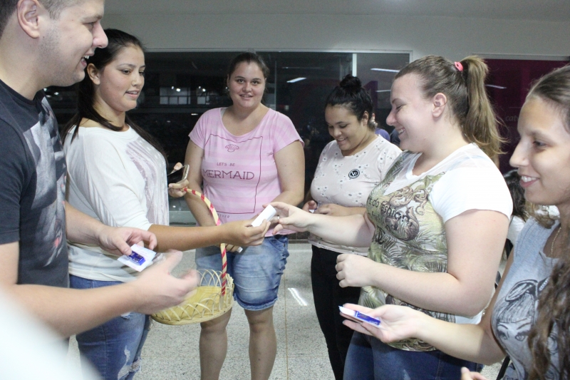 Música, poema e chocolates... Foi assim que acadêmicas, professoras e colaboradoras do Centro Universitário FAG foram recepcionadas pelos alunos do curso de Psicologia, na noite de ontem (08), Dia Internacional da Mulher. A ação foi realizada no espaço de convivência do Bloco III, no intervalo das aulas.