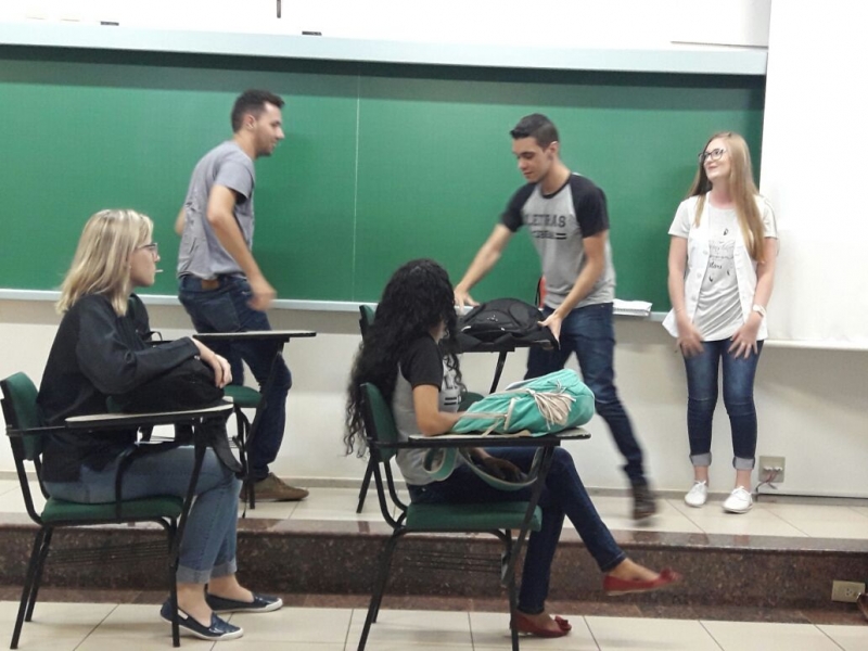 Para assimilar algumas destas características, a docente Janice Salvador propôs uma atividade teatral com os acadêmicos do 1º e 3º períodos. O resultado superou as expectativas. "Os alunos trouxeram roupas, ensaiaram a apresentação e conseguiram trazer um pouco destas nuances da nossa língua para a atividade", explica.