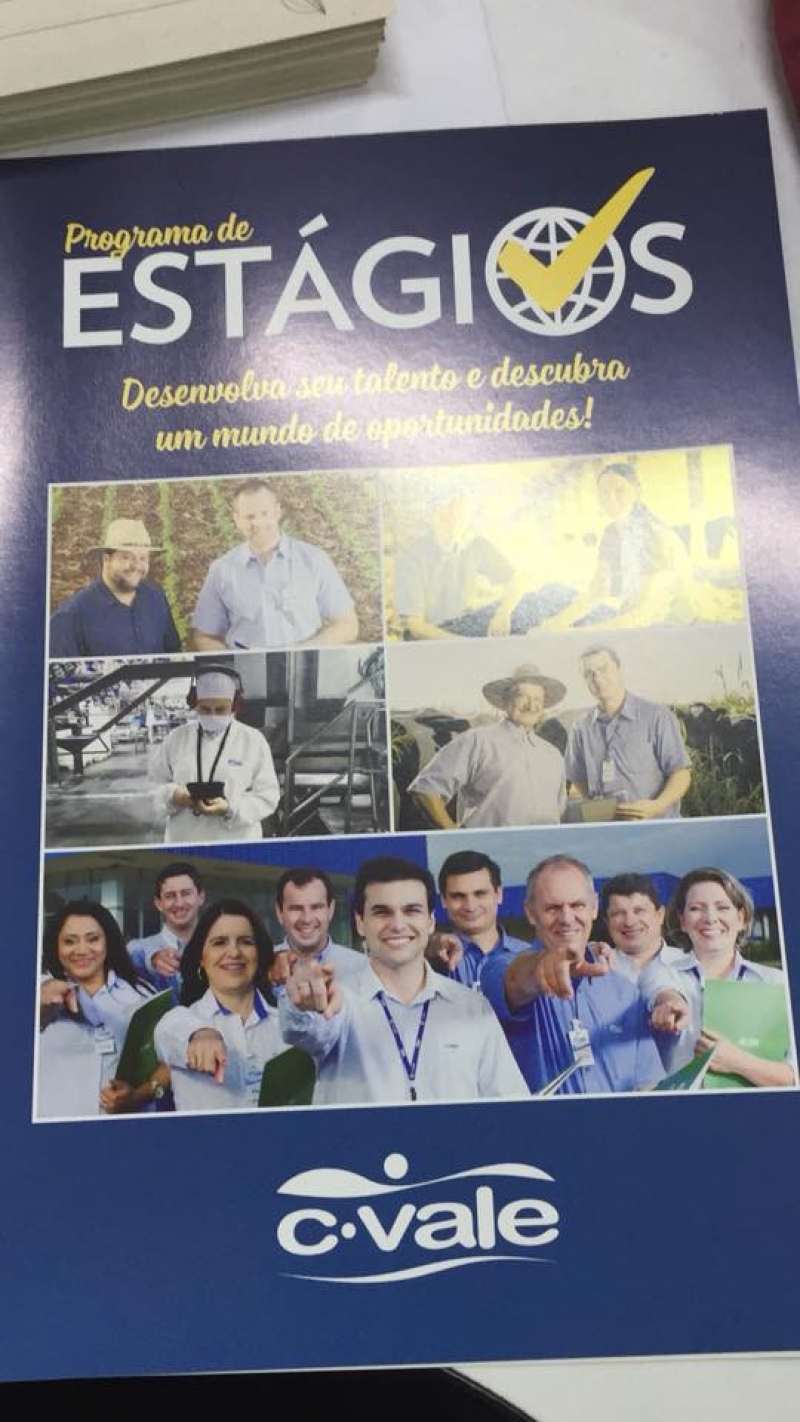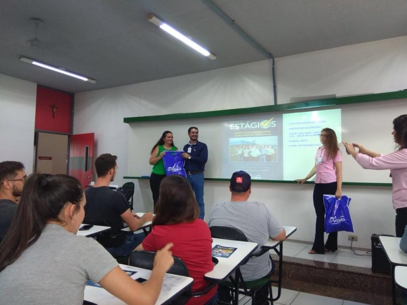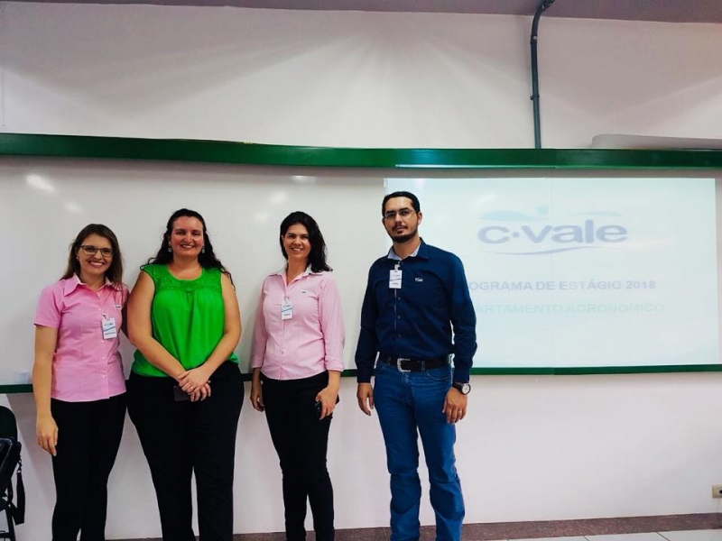 A equipe responsável pelo recrutamento de colaboradores e o engenheiro agrônomo e supervisor agronômico da área técnica Brasil e Paraguai da Cooperativa Agroindustrial C. Vale, Diogo Giongo, estiveram no Centro Universitário FAG, ontem (15). Eles realizaram uma palestra sobre o Programa de Estágio Supervisionado e Trainee da empresa. A intenção é recrutar acadêmicos de Agronomia do Centro FAG.