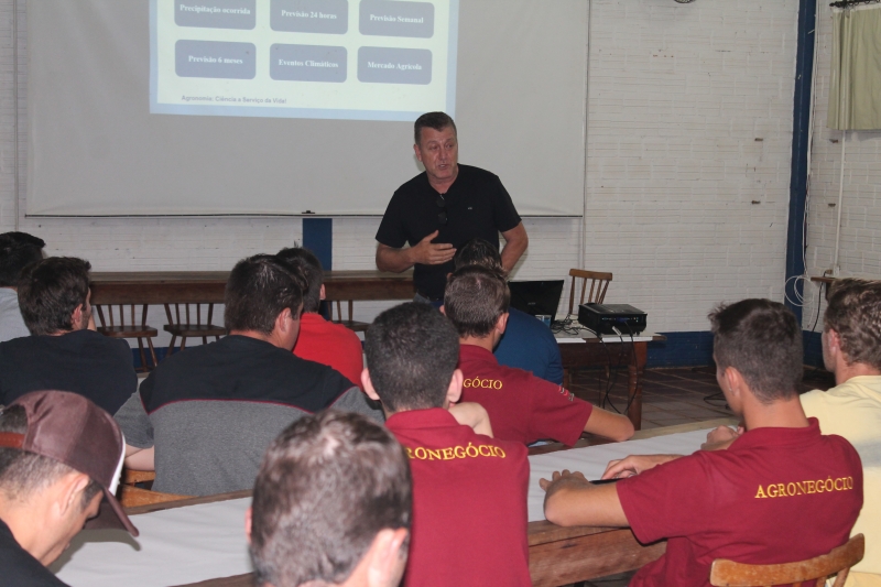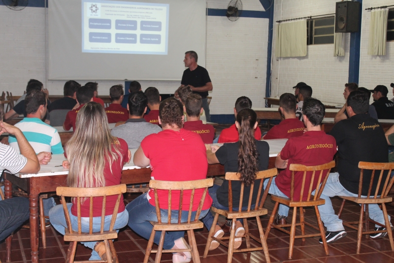 Acadêmicos do curso de Agronegócio da FAG Toledo tiveram uma aula diferente na última sexta-feira (23). Os estudantes participaram do curso "Atualização em Informações Climáticas e Mercadológicas Voltadas ao Agronegócio", na sede da Associação dos Engenheiros Agrônomos de Toledo. O palestrante Adalberto Tedesca Barbosa é técnico da EMATER de Toledo e trouxe as discentes do curso as novidades em ferramentas tecnológicas para a obtenção, manuseio e interpretação de dados climáticos e mercado agropecuário. "Muitas destas ferramentas vocês já tem em mãos, que os telefones modernos que usamos e, ali nós instalamos alguns aplicativos que podem nos auxiliar nestas atualizações", alerta.