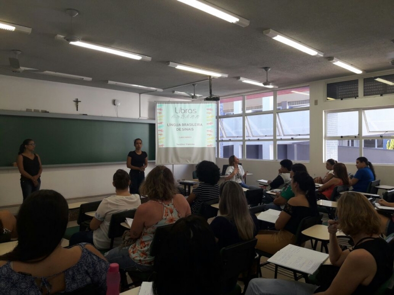Uma das etapas obrigatórias do curso de Letras Português e Libras da FAG Toledo é o estágio em Libras, que deve ser realizado por todos os acadêmicos do 7º período do curso. Um projeto organizado pela própria instituição possibilita que os estudantes realizem o estágio no próprio campus, com o "Curso de Libras para a comunidade interna e externa", que teve sua primeira aula do ano no último sábado (23). "É uma iniciativa muito importante porque possibilita aos nossos acadêmicos a prática do ensino de Libras e para a comunidade também é importante, pois ajuda a disseminar a Língua Brasileira de Sinais na cidade e na Região", afirma a coordenadora do curso de Letras Libras da FAG Toledo, Janice Salvador.