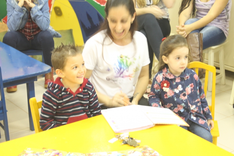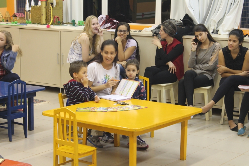 As acadêmicas do 3º período de Pedagogia da FAG Toledo foram desafiadas pela professora Paula Guimarães Bugs durante a última aula da disciplina de Fundamentos da Educação Infantil. As acadêmicas das duas turmas foram divididas em equipes e tiveram que escolher uma história infantil para ser contada de forma lúdica, com o uso de objetos e sons durante a aula. O que difere esta atividade das demais realizadas na brinquedoteca é que os avaliadores dos trabalhos são justamente o público alvo: as crianças. No primeiro dia de apresentações o Pietro e Sofia, de apenas quatro anos, foram os convidados. "Eu gostei principalmente das histórias da Branca de Neve e da Cigarra e a formiga porque deu pra entender direitinho e foram lindas", comentou o pequeno Pietro. Para a professora da disciplina, a atividade faz parte das rotinas de sala de aula e devem ser testadas com os pequenos. "A forma como as histórias são contadas ajudam as crianças a entender e a ideia de trabalhar desta forma com os pequenos tem este objetivo de levar o mundo da imaginação para eles de forma divertida, lúdica e didática", explica.