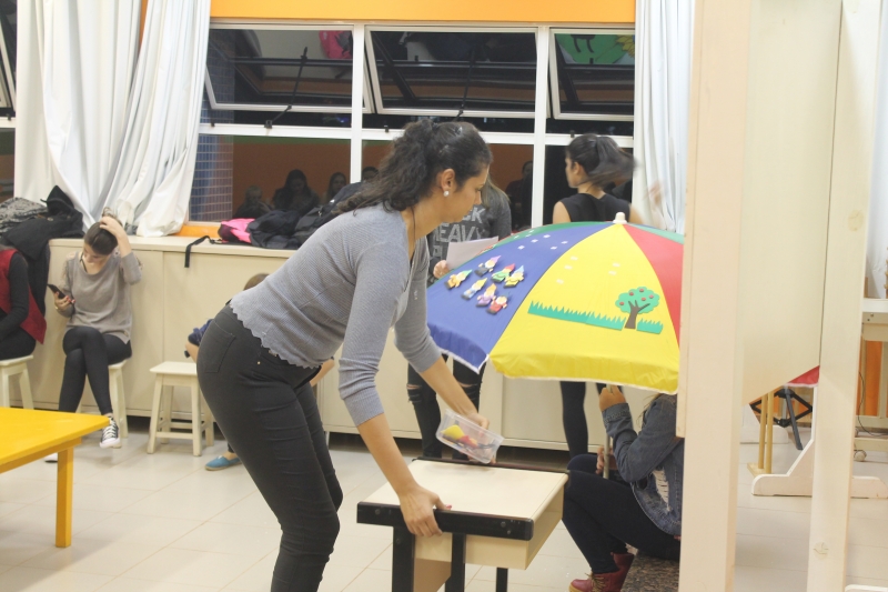 Para a acadêmica Kelli Lorena, a maneira como a história é contada muda à forma de entender dos pequenos. "Eu adorei a atividade porque o simples contar da história, lendo, é totalmente diferente de se vivenciar, vendo as coisas acontecendo e ter os pequenos na sala assistindo, nos ajuda também, a saber, como lidar, dosar, o que contribui pro nosso desenvolvimento enquanto professor", comenta.