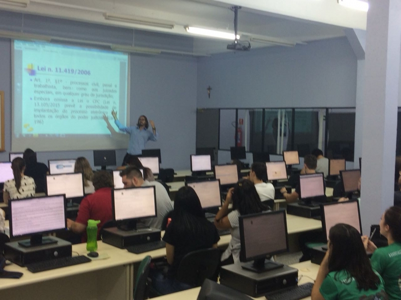 Quando o desembargador e corregedor regional do Tribunal Regional do Trabalho da 9ª Região, Sérgio Murilo Rodrigues Lemos este ministrando a aula magna de Direito da FAG Toledo, muito se comentou sobre a importância do bacharel em Direito estar antenado nas novas tecnologias e apto a utilizar as ferramentas que tem surgido como um auxílio ao trabalho dos profissionais. As informações repassadas nortearam os acadêmicos sobre o futuro do Direito e a importância de se buscar informações o quanto antes. A grade curricular do curso na FAG Toledo já possui uma disciplina específica para tratar destas demandas que é a de "Direito Eletrônico", ministrada pelo professor Marco Antônio Batistella Longo no 7º período. "É uma disciplina muito importante. Na última aula os alunos puderam analisar como as petições são assinadas e protocoladas, via procedimento eletrônico, além de entenderem como, no processo eletrônico, são realizados os diversos atos processuais, como funcionam o cômputo de prazos e como se faz e realiza o cumprimento de prazos", explicou.