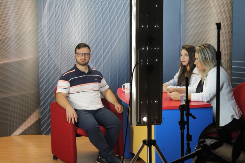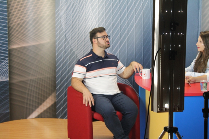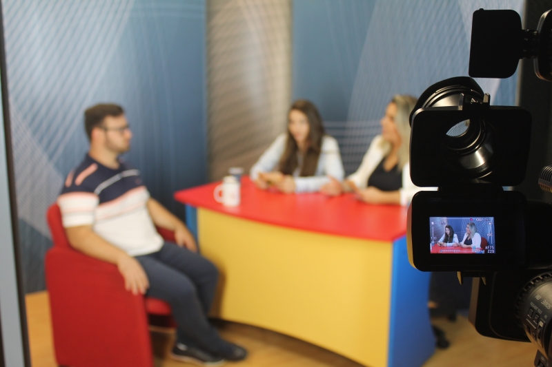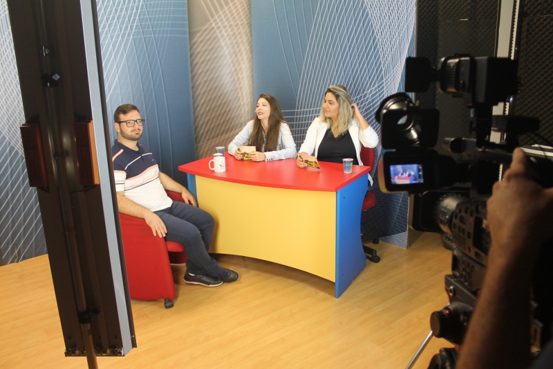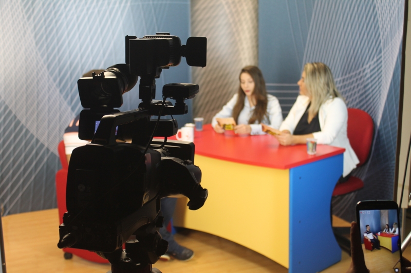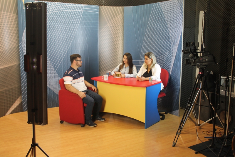 A gravação do talk show Café Literário ocorre nos laboratórios de comunicação do campus