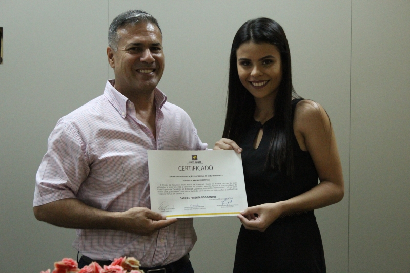 Acadêmicas do curso de Estética e Cosmética da Faculdade Dom Bosco, que concluíram dois semestres sem pendências, receberam na noite de ontem (11), o certificado intermediário. A partir de agora, as alunas podem atuar na área de Terapia Manual em Estética.