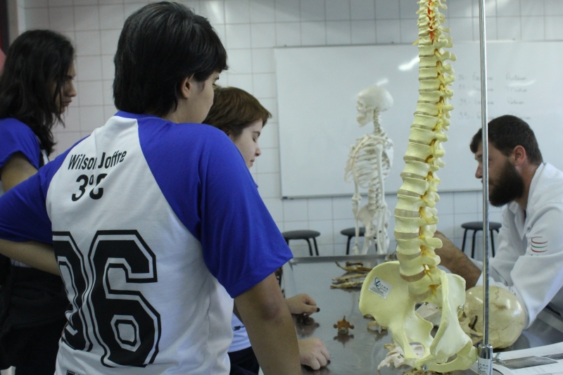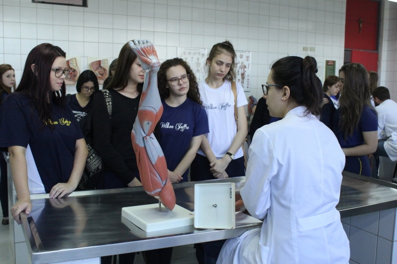 Cerca de 150 estudantes do 3º ano do Colégio Wilson Joffre visitaram, na última sexta-feira (13), o campus do Centro Universitário FAG. Os estudantes participaram de três oficinas nos Laboratórios de Anatomia com os acadêmicos de Medicina, Química com o professor Claudinei Mesquita, e Tecnologia Farmacêutica com o professor Giovane Douglas Zanin.
