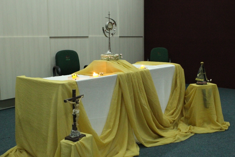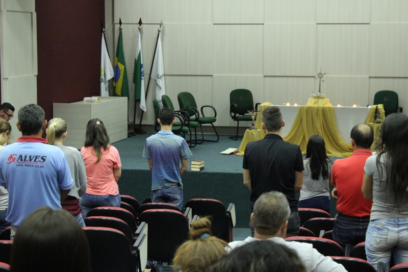 Acadêmicos e professores do Centro Universitário FAG e Faculdade Dom Bosco se reuniram ontem (18), no Auditório do Bloco II, para um encontro de oração e adoração ao Santíssimo Sacramento da Eucaristia. O evento foi conduzido pela Pastoral Universitária Arquidiocesana com apoio do Grupo de Oração Universitária (GOUFAG).