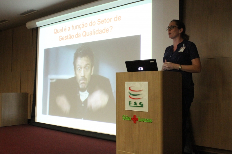 A abertura ficou por conta da coordenadora do Setor de Qualidade, a Enfermeira e Doutora, Mariely Bernardi Fornari, que falou sobre a Gestão da qualidade em Saúda na FHSL