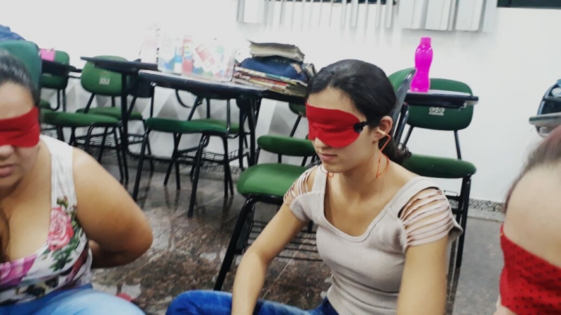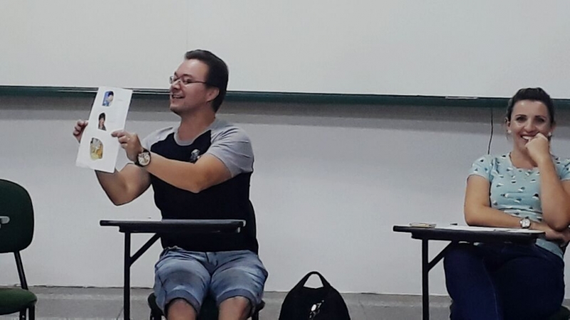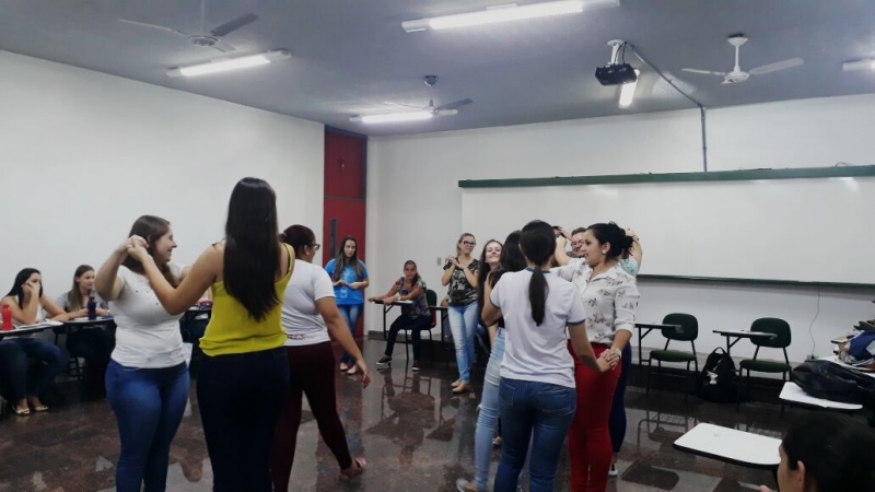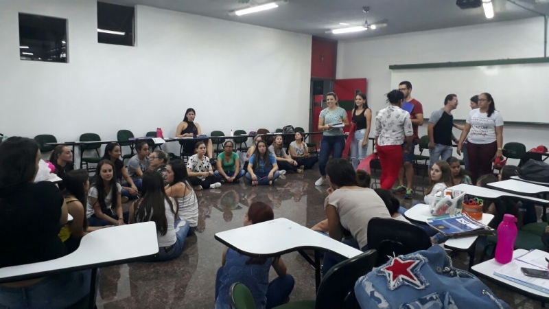Na aula, os alunos também tiveram a oportunidade de fazer a aplicação das Dinâmicas em sala de aula para os colegas, problematizando os espaços escolares e não escolares, uma forma de por em prática o conhecimento adquirido em sala de aula.