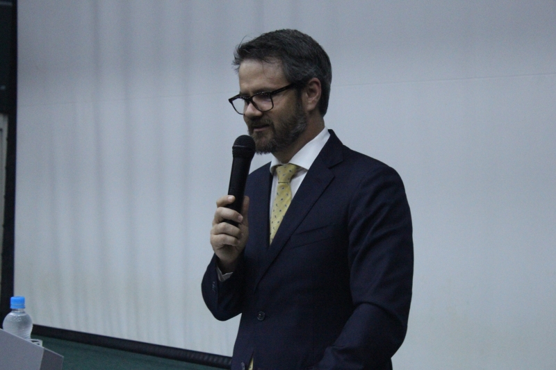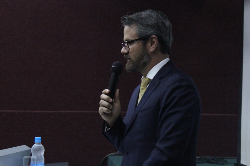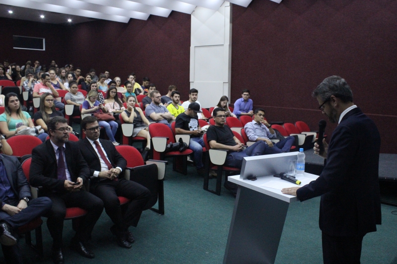 Representando então a ABDConst (Academia Brasileira de Direito Constitucional), Dr. Flávio falou aos acadêmicos do 2º, 3º, 4º e 9º períodos sobre "Limites: A Interpretação Constitucional". O evento foi realizado no Auditório do Bloco 3.