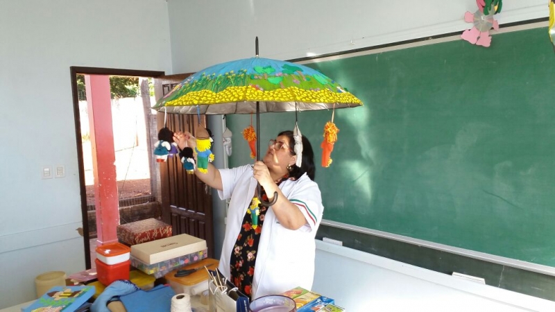A atividade teve como objetivo a produção de materiais para contação de histórias da Literatura Infantil. A professora, Sílvia Cavalheiro, e o Coordenador do curso, Paulo Fachin lideraram o trabalho. Os participantes foram orientados sobre o uso dos mais diversos materiais e ainda a variedade de possibilidades da aplicação das peças produzidas em sala de aula.
