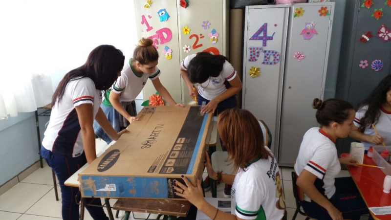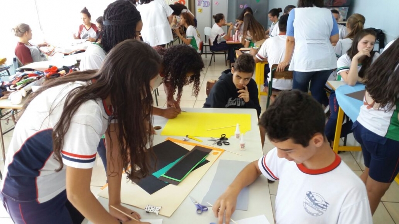 Pensando em como contribuir com a formação dos professores da região, a graduação de Pedagogia do Centro Universitário FAG desenvolveu uma Oficina Pedagógica, com os estudantes e professores de 1ª a 4ª séries do curso de Formação de Docentes do Colégio Estadual Santos Dumont, no município de Cafelândia.