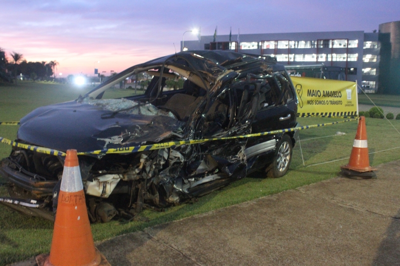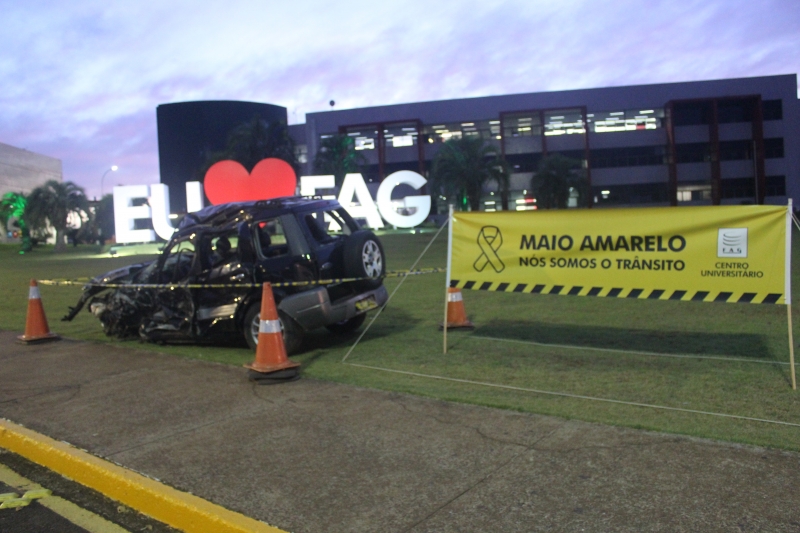 Logo na entrada da Instituição, quem passa é surpreendido por um veículo acidentado. O carro foi cedido pela Polícia Rodoviária Federal, como forma de conscientização sobre os acidentes de trânsito. Por ano no Brasil, mais de 37 mil pessoas morrem nas ruas e nas rodovias. Nesta quarta-feira (09), uma exposição de fotos do jornalista e professor de Fotografia do Centro Universitário FAG, Luis Fernando Frandoloso, trará um olhar reflexivo sobre o resultado de um acidente de trânsito.