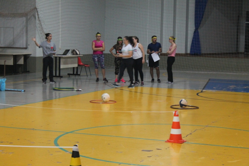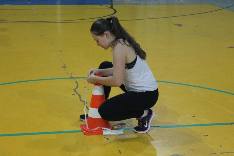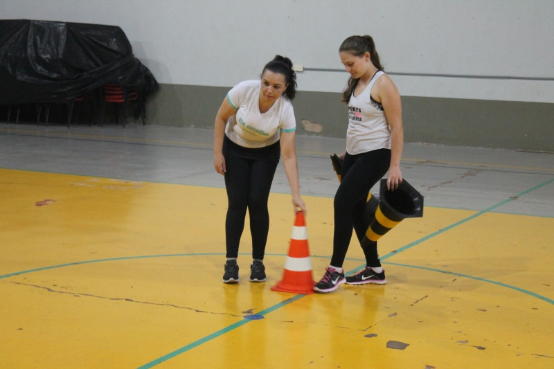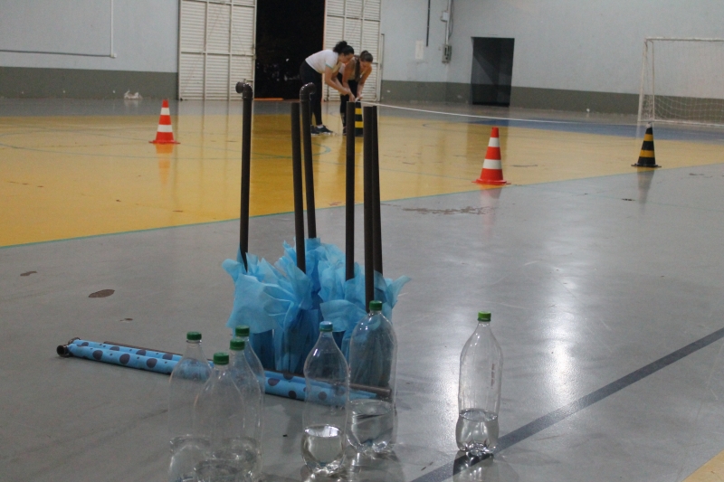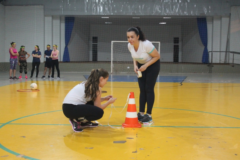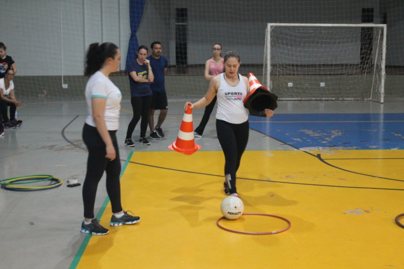 Em uma das atividades propostas, as acadêmicas Lucineia da Rosa e Gabriela Senger desenvolveram um trabalho sobre direcionalidade. "Ela é importante para que os pequenos assimilem o que é baixo, cima, dentro, fora, atrás e frente", explica Lucineia. "Pensamos bastante para juntar as três direcionalidades e deu certo, com criatividade é possível atrair as crianças para uma brincadeira que ao mesmo tempo é aprendizado", comenta Gabriela.