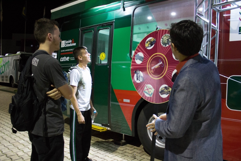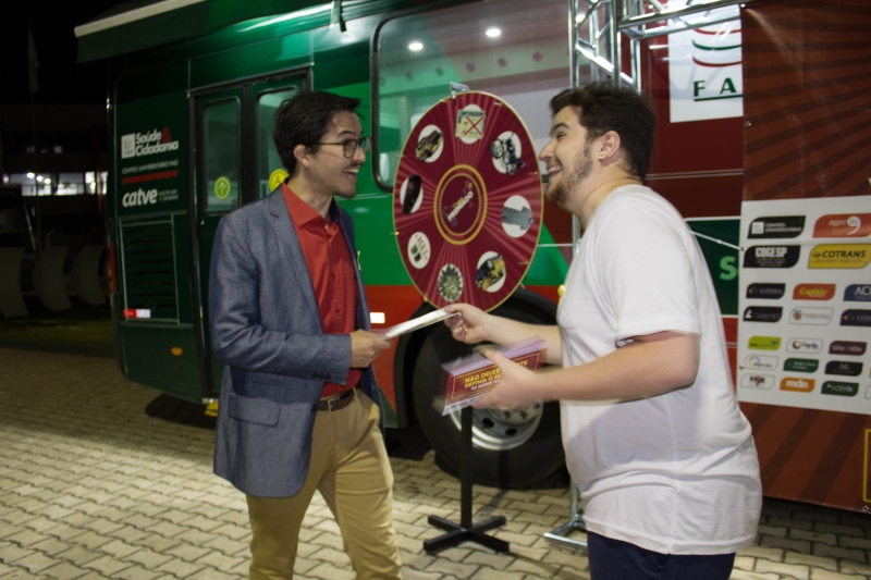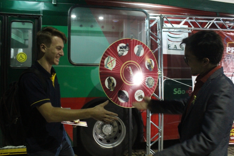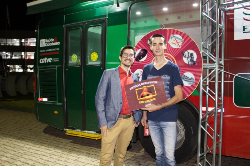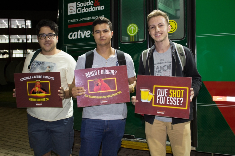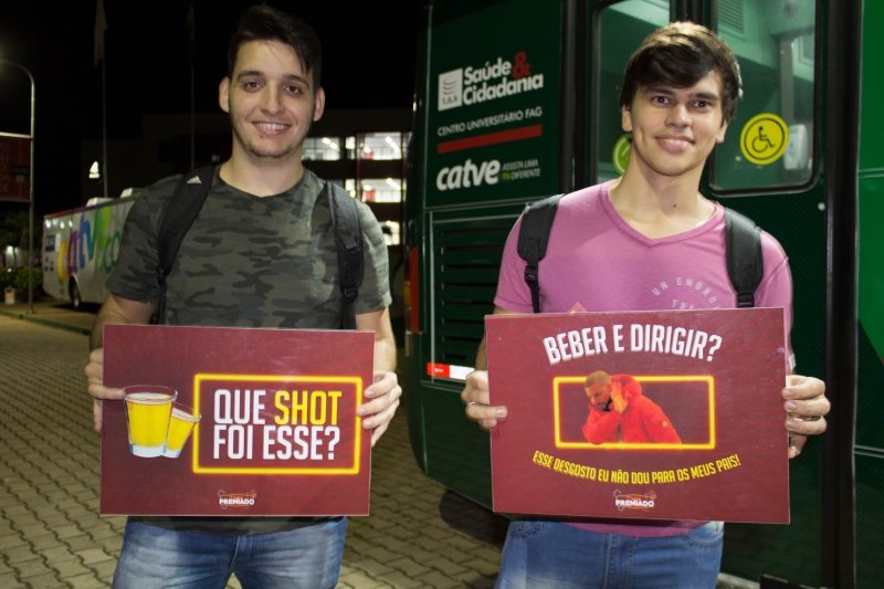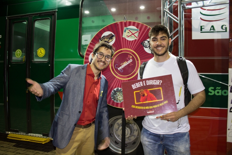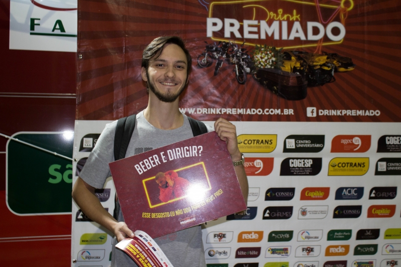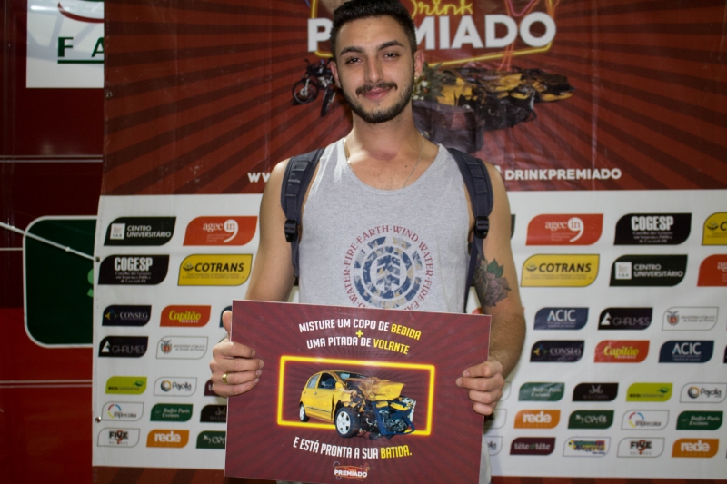 Os alunos foram abordados e convidados a girar uma roleta que continha diferentes prêmios para aqueles que tentam a sorte quando ingerem bebidas alcoólicas e dirigem. "De forma 'engraçada' passamos a mensagem que queremos deixar e entregamos o Drink Premiado. O que pode acontecer se ele beber? Pode ser preso, bater o carro, perder a carteira ou até mesmo morrer, um desses pode ser o prêmio. Tudo isso para que as pessoas reflitam sobre bebida e direção", conta o professor, Sérgio Kulak, um dos idealizadores da campanha.