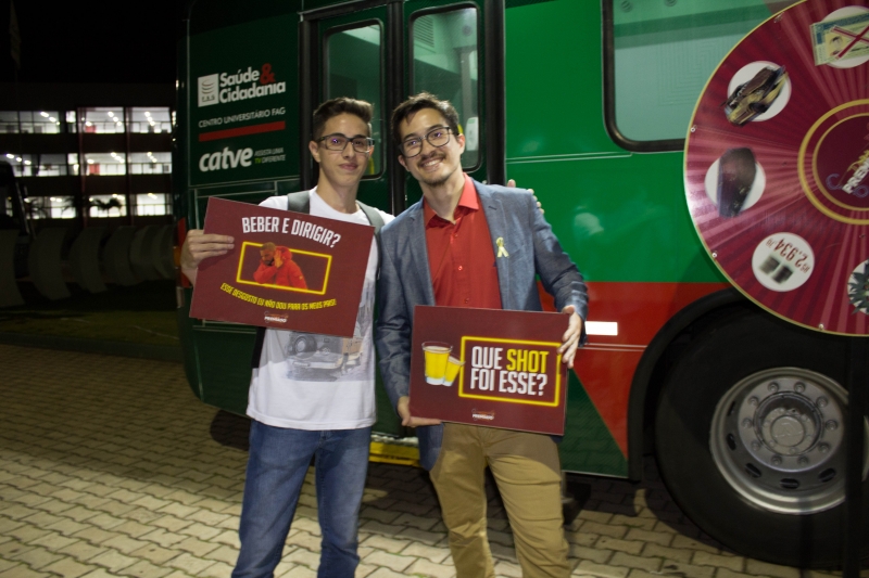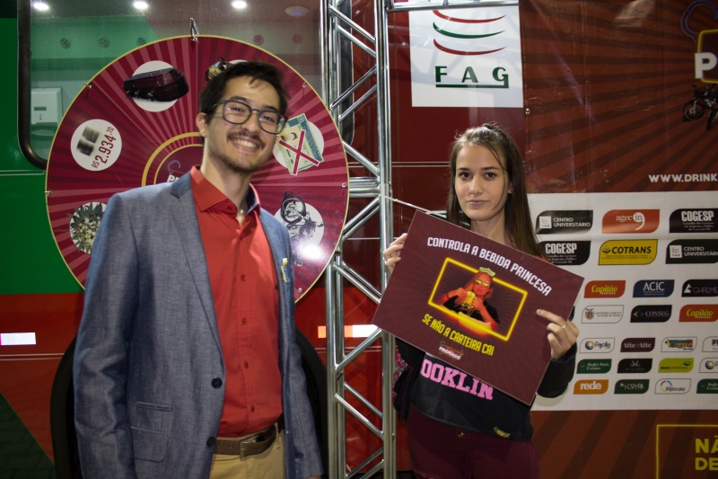A Agecin (Agência Experimental de Comunicação Integrada) e o curso de Publicidade e Propaganda promoveram uma atividade diferente para a comunidade acadêmica na última quinta (10): os alunos do Centro Universitário FAG foram abordados na Granvia e receberam orientações sobre os ricos relacionados à mistura de bebida e direção. A atividade tem ligação com o "Maio Amarelo" e faz parte da campanha Drink Premiado, uma iniciativa do Ministério Público, desenvolvida pela Agecin, que foi abraçada por várias entidades organizadas locais com o objetivo de promover ações e trabalhos de orientação e educativos para mostrar às pessoas o risco que elas assumem ao beber e dirigir.