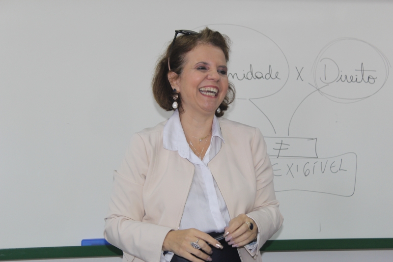 A pedagoga e bacharel em Direito, Drª. Ângela Mendonça, trabalhou no curso de Intervenção Social o módulo "O estatuto da criança e do adolescente: direitos e deveres". Ela destacou que os pós-graduandos precisam aprender sobre as raízes históricas e violações de direitos no Brasil, pois quem trabalha com Educação Social precisa dessa ferramenta para atuar no seu cotidiano de maneira correta. "Muitas vezes esse desconhecimento de leis leva os profissionais a cometerem violações de direito, sem que tenham noção do que está acontecendo. Esse módulo tem esse objetivo, trabalhar a relação teórico-prática no cotidiano nas intervenções da criança e do adolescente", comenta.