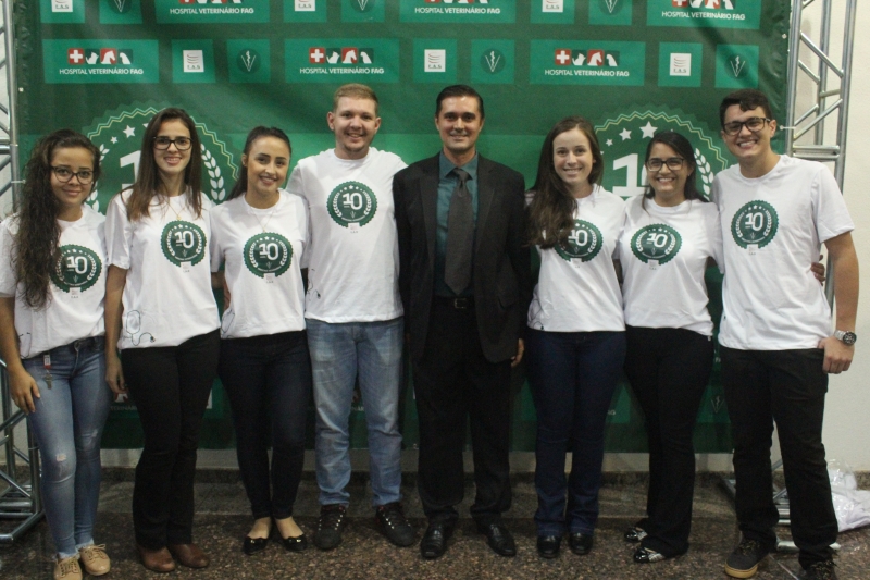 O curso de Medicina Veterinária do Centro FAG completou 10 anos de trajetória, e para celebrar a data, acadêmicos, professores, direção, coordenação, egressos do curso e autoridades do setor se reuniram em evento realizado no Anfiteatro da Reitoria.