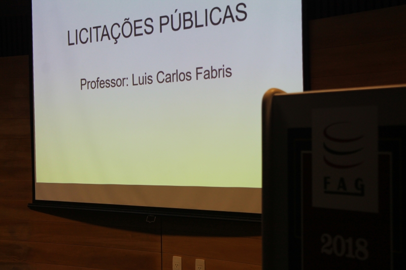 Os acadêmicos do 5º período de Ciências Contábeis e do 7º período de Administração da FAG Toledo participaram de uma palestra com o professor Luis Carlos Fabris nesta terça-feira (15) no auditório da instituição. O docente da instituição também é servidor público de carreira e atua diretamente com as licitações públicas do município de Toledo. "Os nossos estudantes lidam diariamente com empresários que podem vir a entrar numa concorrência pública. Para a empresa ou prestador de serviço esta relação pode ser um grande negócio", explica Fabris, ressaltando a importância dos estudantes de Administração conhecerem o potencial de negócio e ao mesmo tempo a responsabilidade em se trabalhar com o setor público. "Nós temos a obrigação de transmitir estas informações aos acadêmicos para que se torne uma prática dentro dos escritórios e empresas em que vão atuar ou que já atuam, se atendando sobre a lei de responsabilidade fiscal e conhecendo bem toda a tramitação, para que os processos sejam cumpridos pelas contratadas, sem gerar problemas, ou seja, uma parceria benéfica para todas as partes envolvidas", friza.