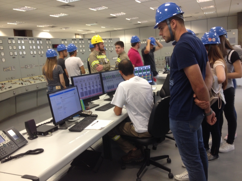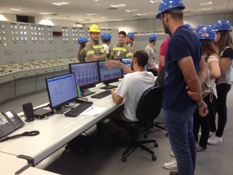 Divididos em dois grupos, os alunos visitaram a sala de controle e também puderam ver a linha do tempo que mostra os estágios da construção da Usina. Em seguida, o grupo visitou a parte superior das unidades geradoras e também visualizaram a o funcionamento do eixo da turbina. O roteiro foi finalizado com a visão externa da unidade geradora e a verificação do local onde a turbina é fixada.