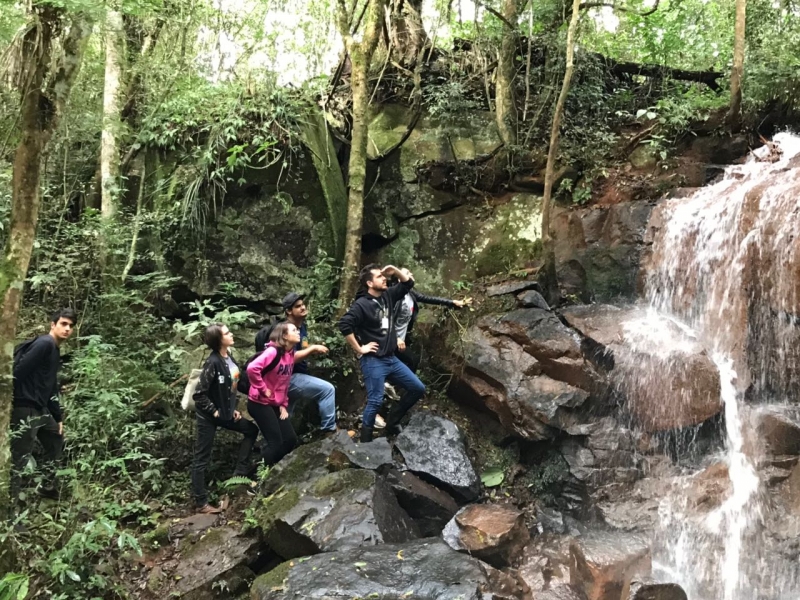 Os professores, Juliano Karvat e Patrícia Galvão, realizaram uma aula prática no Parque Ambiental de Cascavel, localizado às margens da BR-277, em Cascavel. A atividade aconteceu com o 3º e o 7º períodos do curso de Ciências Biológicas do Centro Universitário FAG, nas disciplinas de Botânica Criptogâmica e Palentologia, respectivamente.