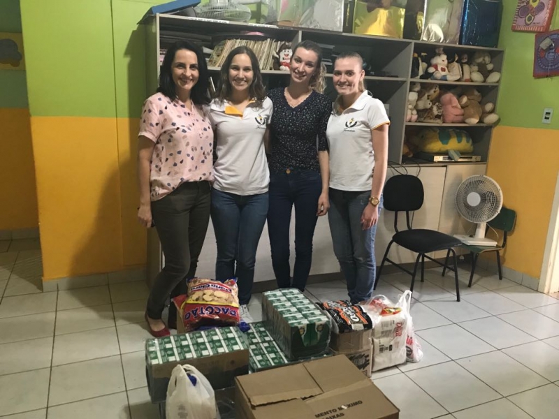 Uma das etapas do Projeto Integrador do Curso de Farmácia do Centro Universitário FAG é o Projeto Farmácia Solidária. A partir da iniciativa, os alunos de cada turma se organizam para realização de uma ação social. O 7º período do curso se sensibilizou com o trabalho da Creche Anjo da Guarda, que atende diariamente 38 crianças, e depende inteiramente de doações da comunidade. Eles se organizaram e arrecadaram leite, bolachas, produtos de higiene e de limpeza.