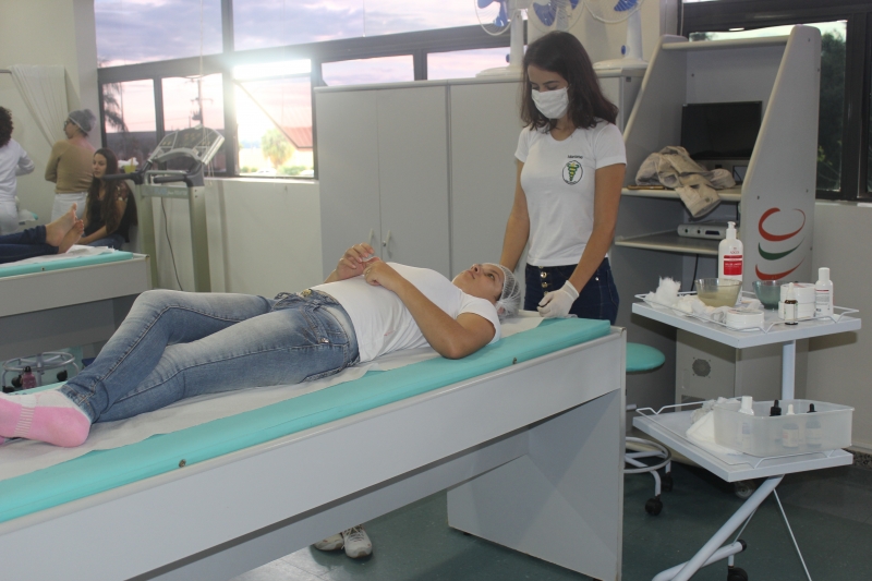 Com a fisioterapeuta, Patrícia Dalsasso, o assunto foi "Peelling e Associações para Tratamentos Faciais". Na sala de Estética Corporal das Clínicas FAG, ela ensinou as técnicas aos acadêmicos. "Eu citei uma parte teórica sobre as ações de cada ácido, indicações e contraindicações e, depois, os alunos fizeram a parte prática, fazendo umas nas outras. Houve bastante interação. É uma hora que, normalmente, o fisioterapeuta não tem muito contato, mas a área de dermatofuncional também faz parte da atuação desse profissional", destaca a professora.