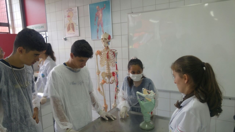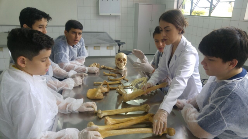 Participaram das atividades oitavos e nonos anos do Colégio. Eles realizaram aulas práticas nos laboratórios de Anatomia, Microscopia e Química. "Para os alunos do Colégio, é importante por terem contato com as peças anatômicas, os corpos à disposição para estudo no laboratório de Anatomia. Eles conseguem ter uma noção melhor do que os professores vão explicar em sala de aula. Com as aulas de microscopia, eles também puderam visualizar a célula da mucosa oral, foi um aprendizado bem interessante", conta a professora. Ela ainda acrescenta que, para os acadêmicos, "foi uma oportunidade de contato com os alunos, sendo benéfico para eles, pois permite que eles conhecem esse universo dos estudantes dessa faixa etária, cheios de energia e curiosidade", finaliza.