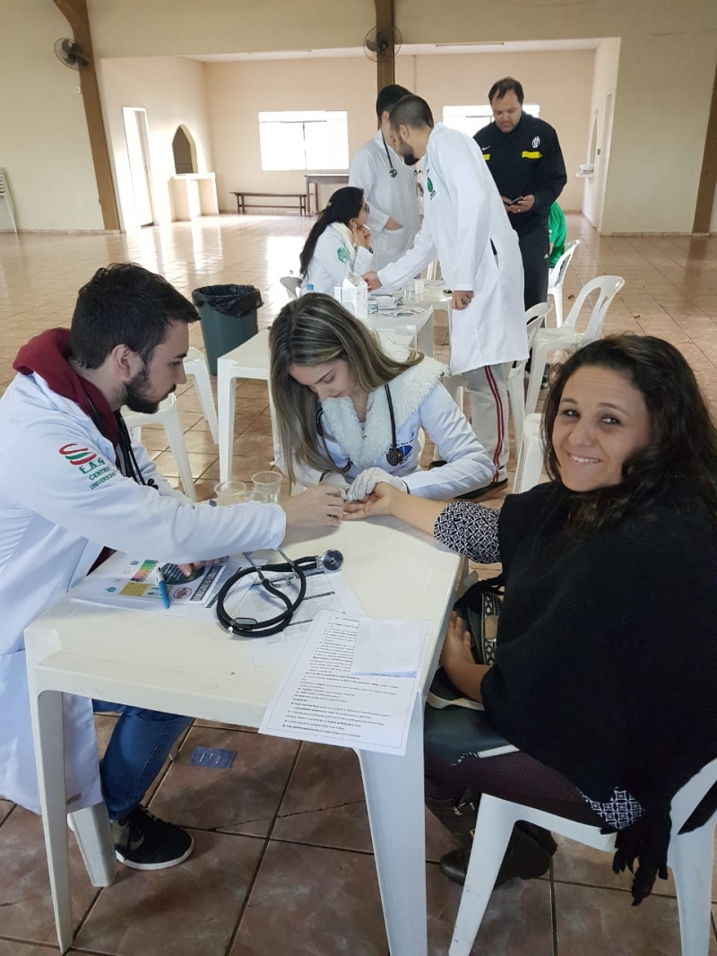 No local, a população, em um primeiro momento, foi questionada sobre a rotina de alimentação e atividades físicas. Em seguida os acadêmicos perguntaram sobre o histórico de doenças.