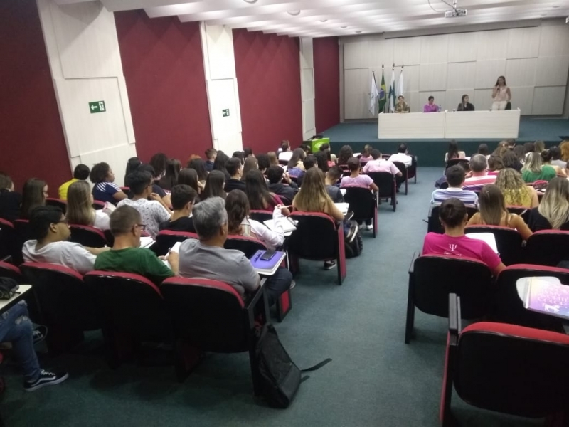 Participaram do evento: a psicóloga clínica, Camilla Rotta; a psicóloga jurídica e egressa do Centro FAG, Elaine Barros Veronese; a psicóloga social, Ana Cláudia Lubnow; e a psicóloga hospitalar e também egressa da FAG, Aléxia Fortes do Amaral. "A Psicologia é ciência que gera uma prática profissional. Enquanto ciência tem por objetivo explicar como o ser humano pode conhecer e interpretar a si mesmo e como pode interpretar e conhecer o mundo em que. Enquanto prática profissional, a Psicologia coloca o conhecimento por ela acumulado a serviço de indivíduos e instituições e atende a demandas variadas em diferentes contextos, visando em todos a promoção da saúde e da qualidade de vida, sendo assim, possui diversas áreas de atuação, algumas consideradas tradicionais, outras consideradas emergentes. O encontro foi importante para que os alunos, logo no início do curso, já compreendam essas múltiplas possibilidades', afirma a professora.