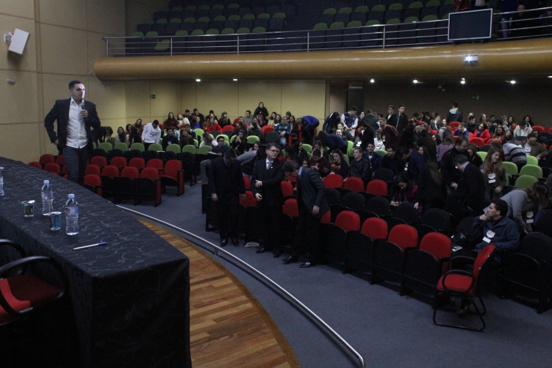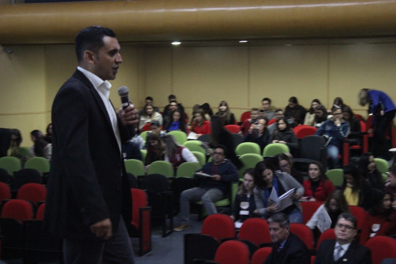 Após as falas dos representantes, o administrador de empresas e sócio diretor da MOVA-SE Treinamentos e Desenvolvimento de Pessoas, Cleyton Silva, subiu ao palco e conduziu a palestra com o tema: "Obtendo Sucesso em meio à Crise?. "Quando falamos de crise pensamos sempre na crise política ou financeira, mas existem outros tipos de crises que acontecem antes dessas desencadear. Tratei cinco elementos com os alunos que devem ser trabalhados: profissional, saúde, finanças, relacionamento e espiritual. Todas essas áreas têm que estar 100% para que o resto funcione. A minha palestra não é só uma palestra motivacional e sim, quero que eles saem daqui com ferramentas a serem aplicadas no dia a dia", manifesta.