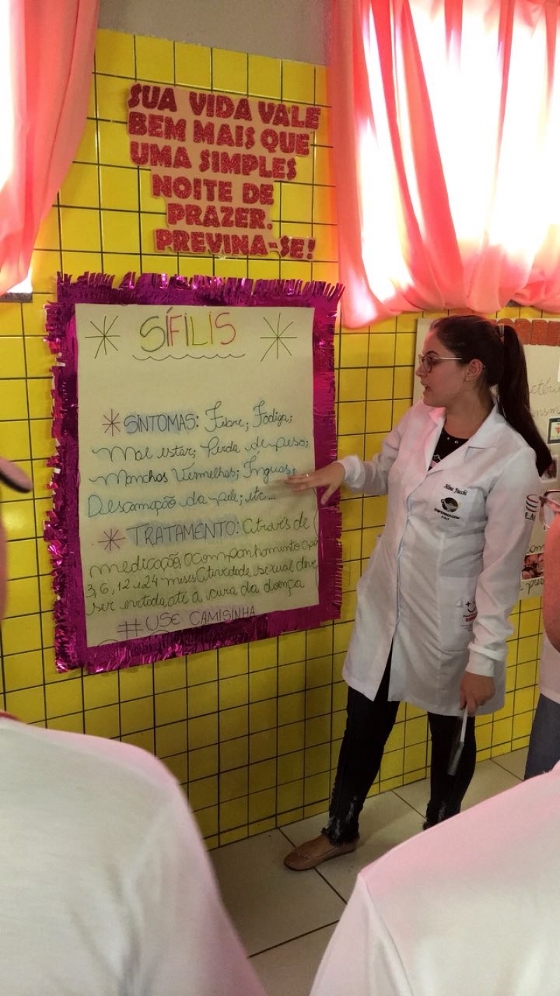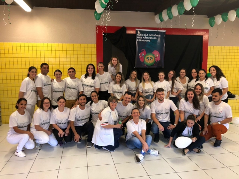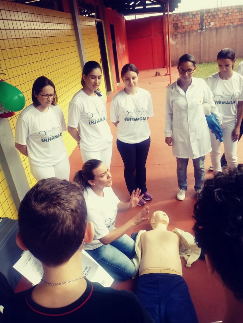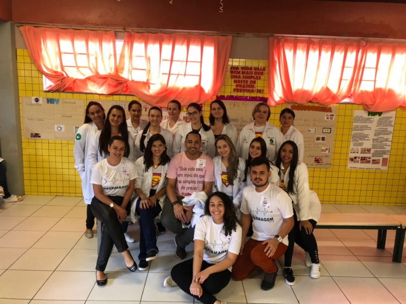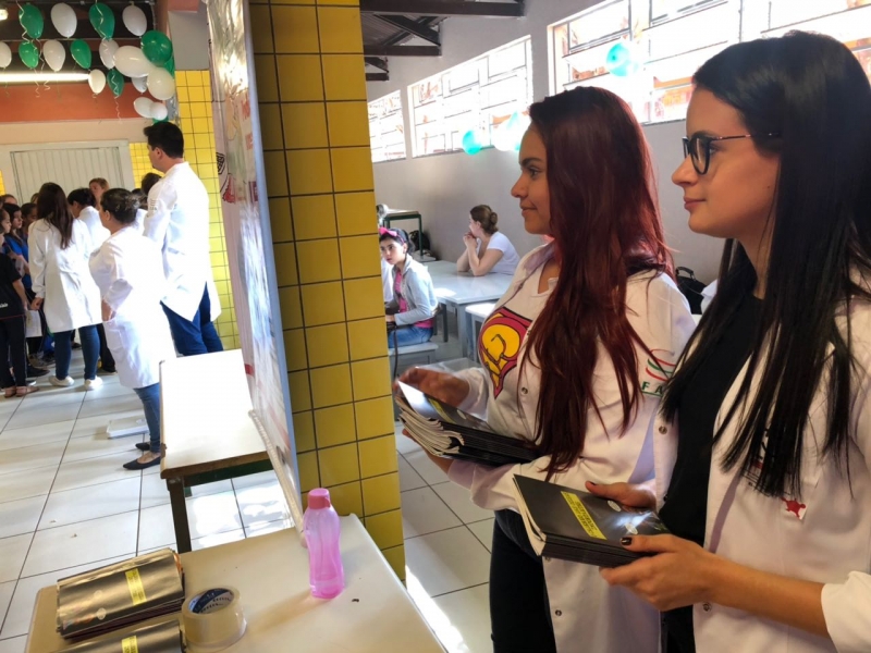 De forma unificada, alunos de todos os períodos do curso de Enfermagem do Centro Universitário FAG realizaram uma ação no Colégio Estadual Padre Pedro Canísio, em Cascavel. Os alunos do 1º período abordaram a importância da lavagem das mãos; os do 3º período demostraram a importância de cuidar da alimentação, para os riscos da obesidade e hipertensão; 5º período abordou o tema Doenças Sexualmente Transmissíveis e a importância da prevenção da gravidez na adolescência; os alunos do 7º período ficaram responsáveis pela organização do evento. A ação faz parte da Semana Acadêmica do curso e marcou o encerramento do evento.