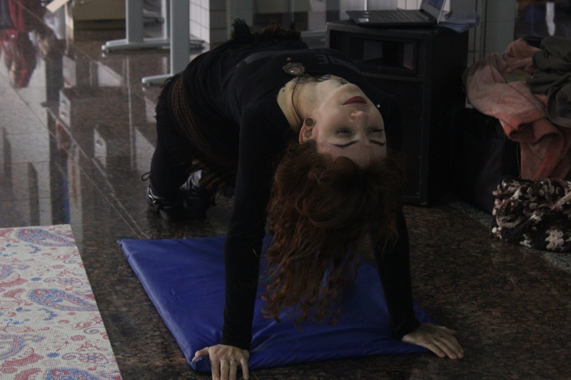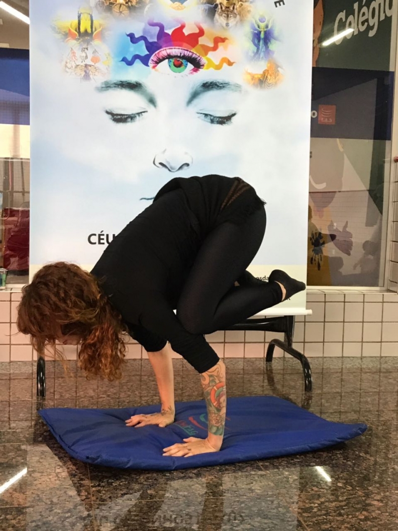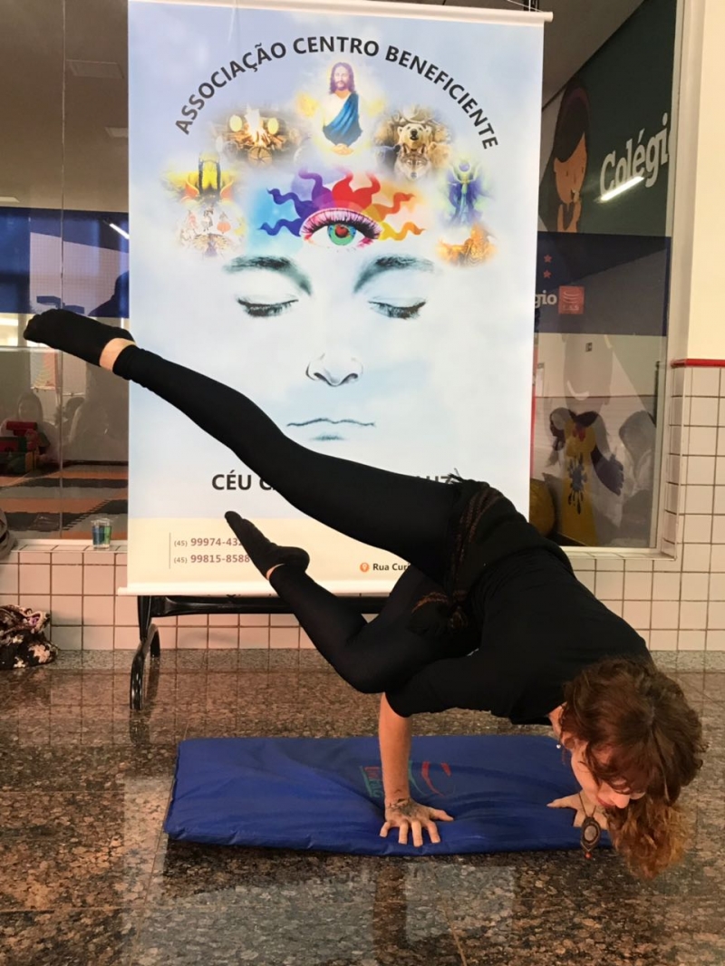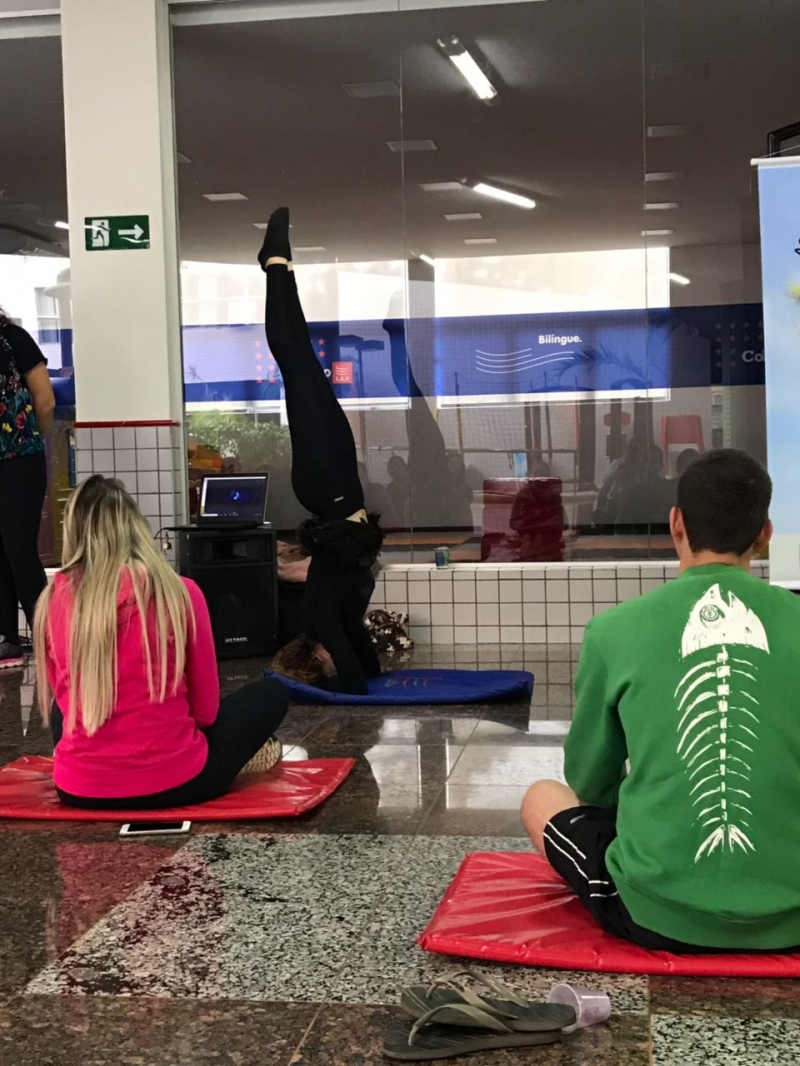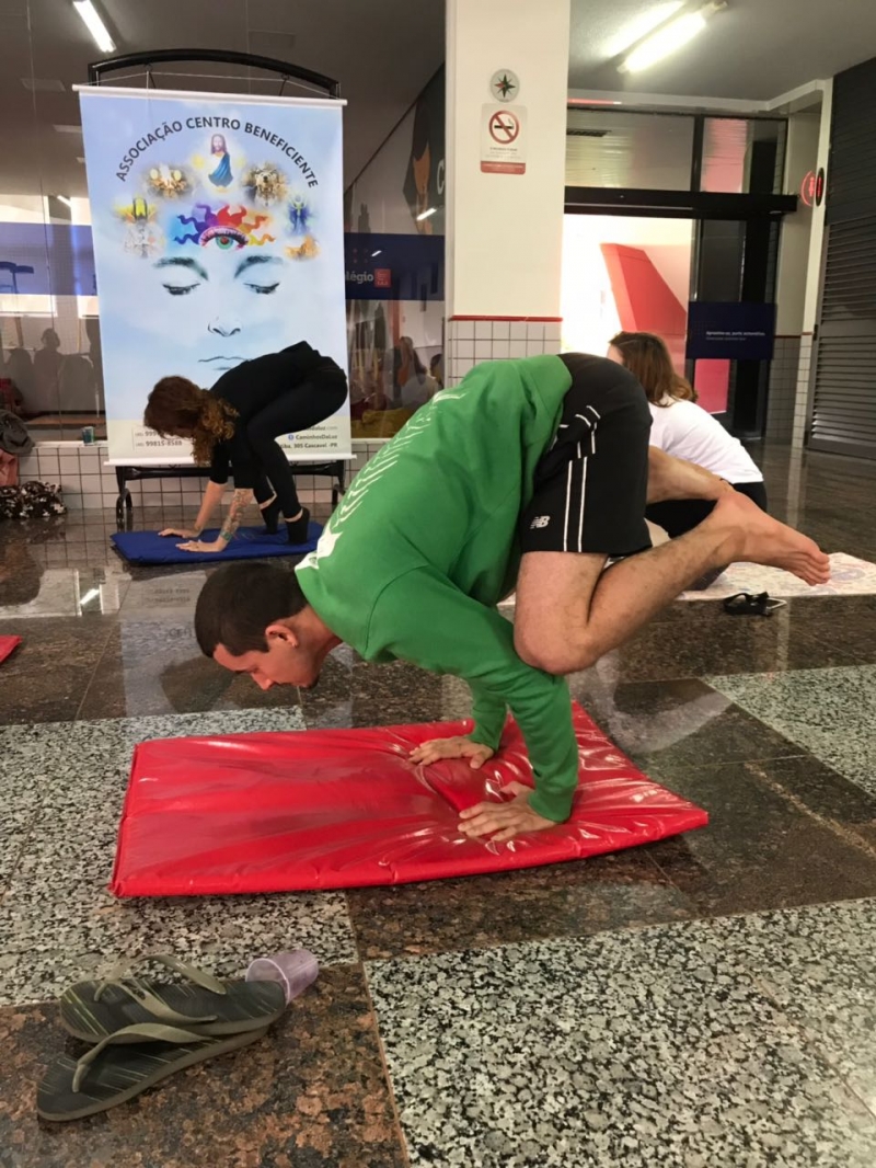 A ação foi conduzida pelas instrutoras da Associação Centro Beneficente "Céu Caminho de Luz". Marines Korilo conta que através do Centro de Atenção Psicossocial (CAPS) e a prefeitura ela e uma outra instrutora realizaram uma palestra na Fundação Hospitalar São Lucas e foi quando conheceram a Liga Acadêmica e foram convidadas para aplicar a prática no campus do Centro FAG. "Foi um privilégio poder dar aula pra eles e mostrar um pouco do que é o yoga. O yoga não na verdade não é uma terapia integrativa, como citam, e sim, é uma prevenção. O yoga previne o stress, depressão... trabalha na prevenção. E também claro no tratamento. Foi possível mostrar pra eles um pouco dos benefícios dessa prática", explica.