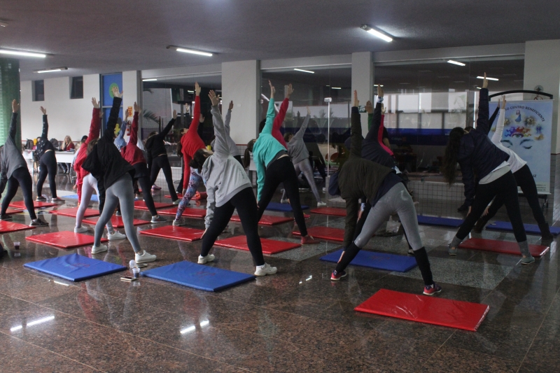 A LAMIC (Liga Acadêmica de Medicina Integrativa e Complementar) do Centro FAG promoveu uma prática de Yoga aos acadêmicos. A atividade que envolve meditação e exercício físico concedeu um momento de paz e relaxamento aos alunos. "Nós de Medicina estamos sempre muito atarefados, queremos inserir essa prática no meio acadêmico, para que possa nos ajudar a lidar com o dia a dia que não é fácil. É um momento que necessitamos tirar para aprender a respirar e ter um equilíbrio mental e espiritual", conta a presidente da Liga, Lídia Hoffmann.