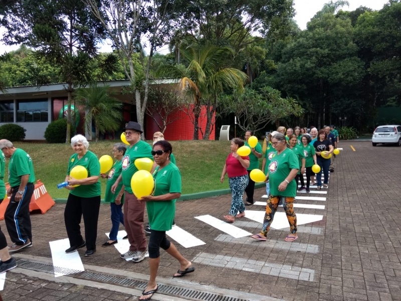 Além da palestra, os idosos receberam balões amarelos, como símbolo do Movimento "Maio Amarelo", e realizaram exercícios práticos no campus do Centro Universitário FAG, sendo orientados sobre a sinalização e como fazer uso da faixa de segurança.