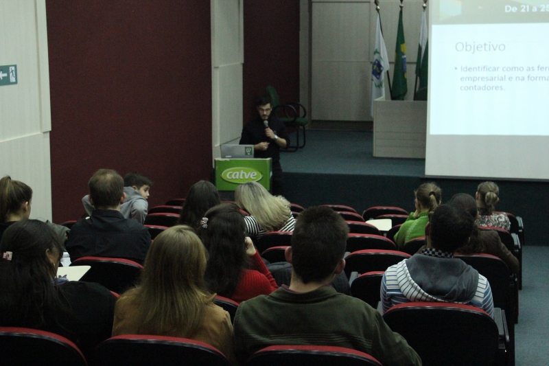 Na quarta (23) o público acompanhou a palestra com o professor e Mestre, Luis Fernando Conduta, que trouxe o tema "Pensando fora da caixa: as perspectivas da profissão contábil considerando o atual mercado de trabalho brasileiro. "A proposta é trazer um 'mundo' diferente do que eles veem na sala de aula, algo que não é convencional, mas que não é foge do normal. Mostrar a eles um novo que não é tão novo, desmitificar a contabilidade, abordando mesmo a tecnologia e a inovação nessa área", explica.