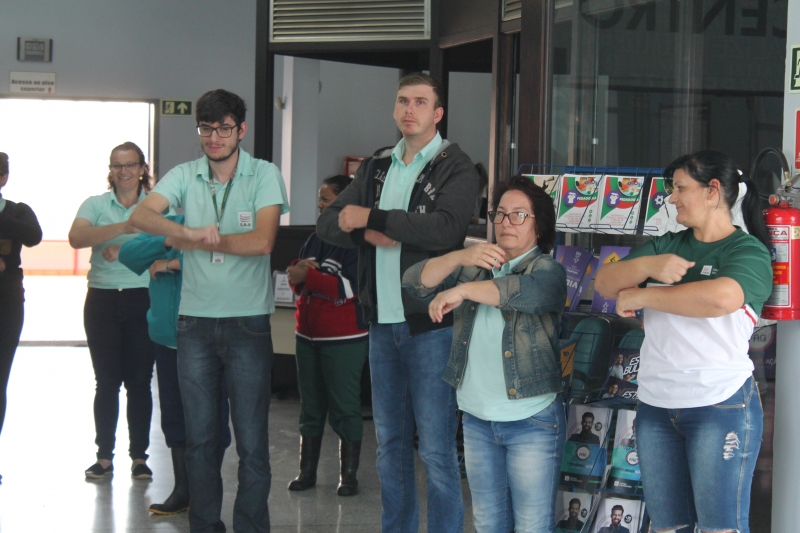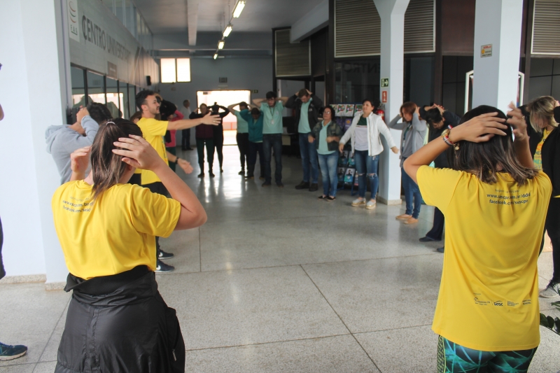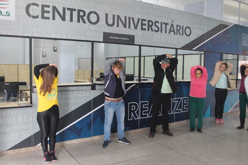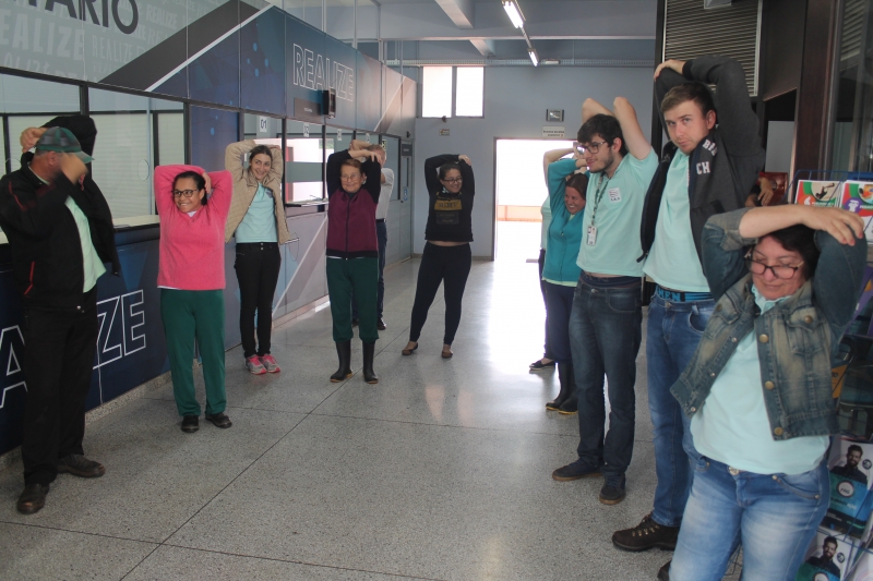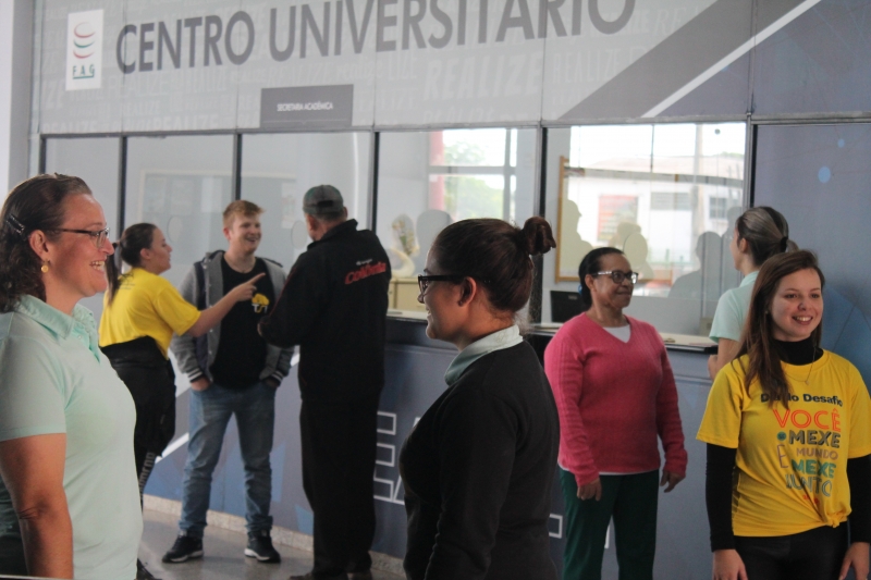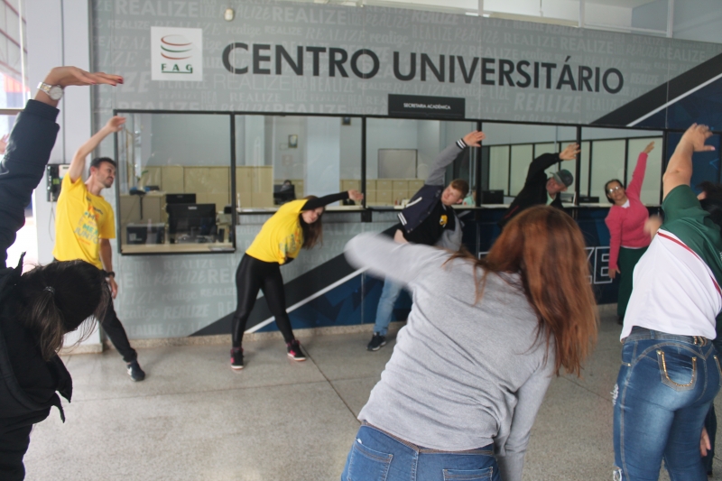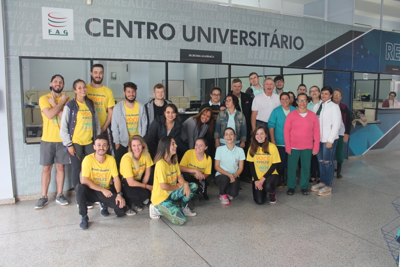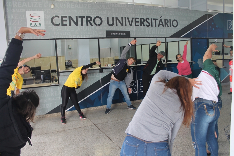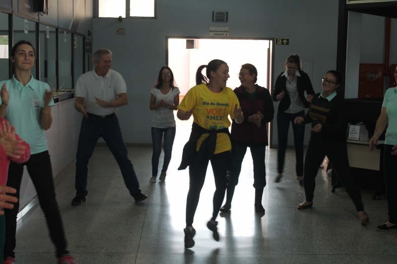 Nesta quarta-feira (30) acontece o Dia do Desafio 2018, disputa internacional que visa incentivar a população a praticar atividades físicas. Na FAG Toledo os colaboradores contribuíram com a competição suando a camisa. Os profissionais da área administrativa e de apoio realizaram 15 minutos de atividades, com direito a dança, jogos e alongamentos. Os trabalhos foram acompanhados por uma equipe do evento que conta com estudantes de educação física e representantes do Sesc Toledo.
