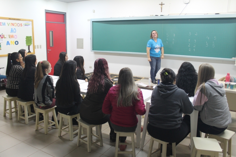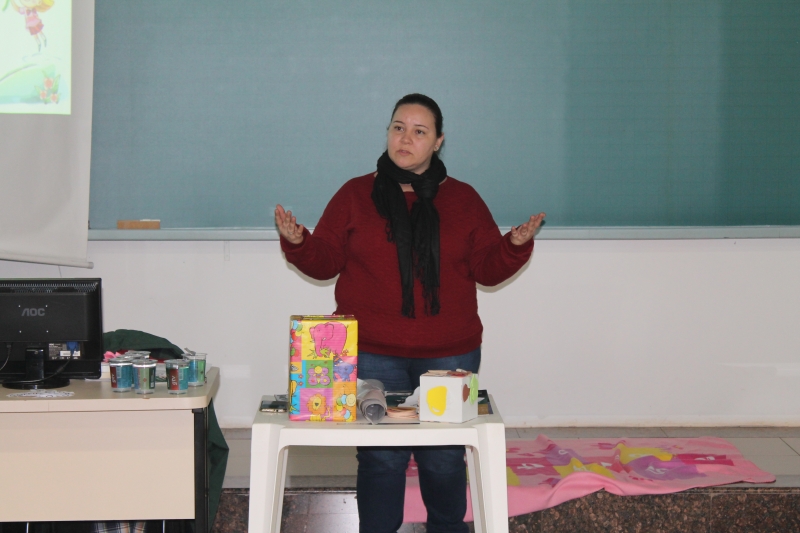 A professora Herley Maria Valdemar abordou com os alunos "O pensamento lógico matemático e as contribuições no desenvolvimento das habilidades cognitivas para leitura e escrita" na sala 306, também utilizando objetos diversos para ensinar técnicas para facilitar o processo de ensino aprendizagem da matemática utilizando a criatividade.