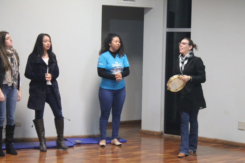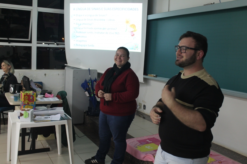 A fonoaudióloga Giovanna Romero Paula trabalhou com os alunos o tema: A fonoaudiologia e o papel da voz do professor. "Os problemas com a voz são os maiores geradores de atestados médicos entre os profissionais da educação. Precisamos aprender a atualizar este instrumento tão importante de forma moderada e responsável", alerta a instrutora. A professora Gisele Minozzo dos Santos e o professor Thiago Mazzarollo comandaram a oficina "Letramento para surdos: práticas de ensino a partir da ludicidade", na sala 305.
