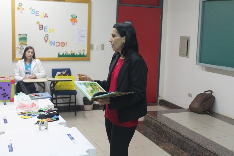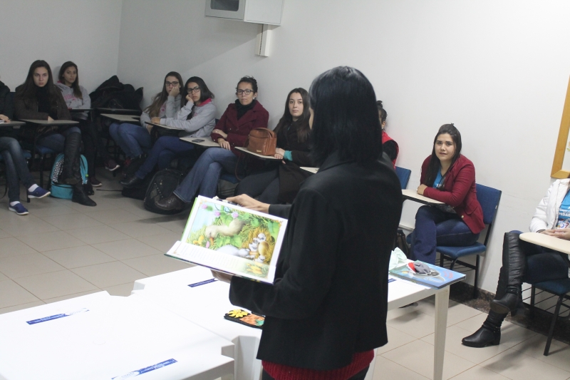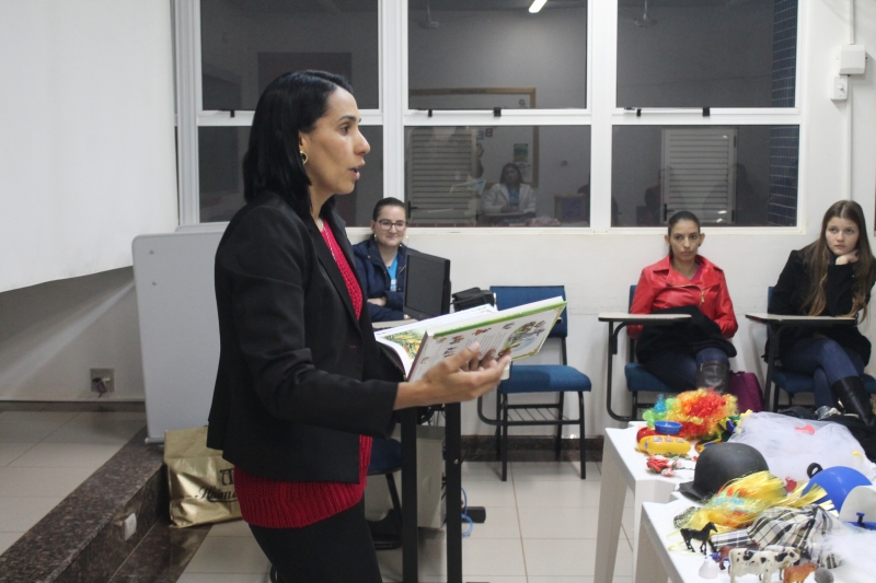 Uma série de oficinas temáticas foi realizada no bloco III da FAG Toledo nesta quinta-feira (7). As atividades integram a Semana Acadêmica de Pedagogia e contou com a participação maciça dos alunos do curso. Na sala em frente ocorreu uma oficina ministrada pela professora Sueli Rosa Guimarães, que trouxe objetos como fantoches, máscaras e outros assessórios para abordar o tema: Contação de histórias e formação de leitores.
